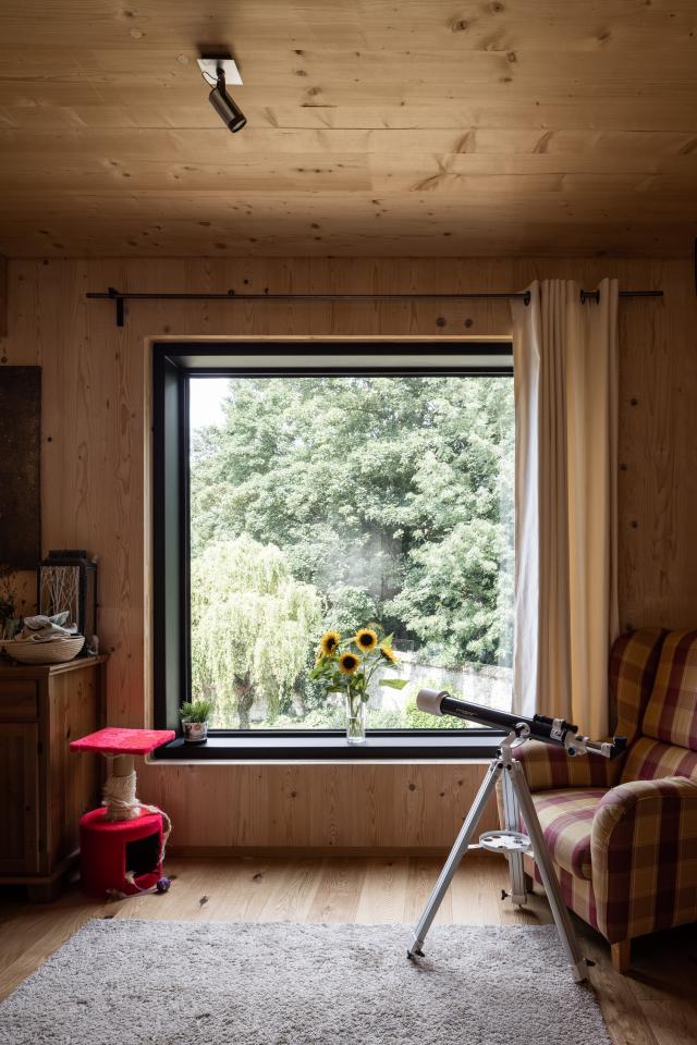 The project uses cross-laminated timber (CLT), a sustainable material with a low environmental impact. CLT improves insulation and energy efficiency. Combined with solar panels, green roofs, and rainwater harvesting, this approach minimizes the carbon footprint and ensures long-term energy efficiency.