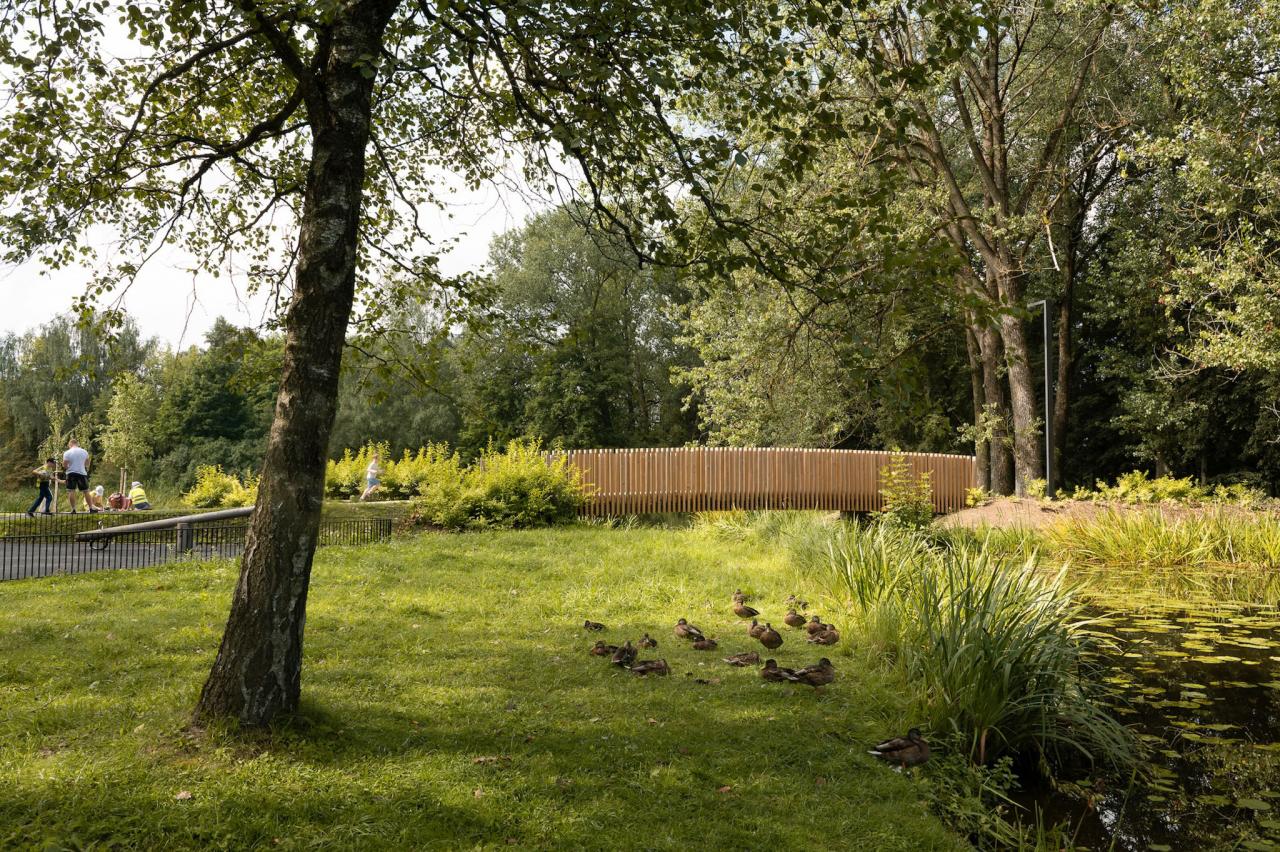 The project improved connectivity, safety, and inclusivity. New paths and bridges enhanced access for cyclists, strollers, and wheelchair users. The existing bridge was reconstructed, and the industrial zone fence removed, fostering openness. A community garden, co-designed with residents, replaced part of the industrial area, featuring gardening spaces, meeting spots, and public art.