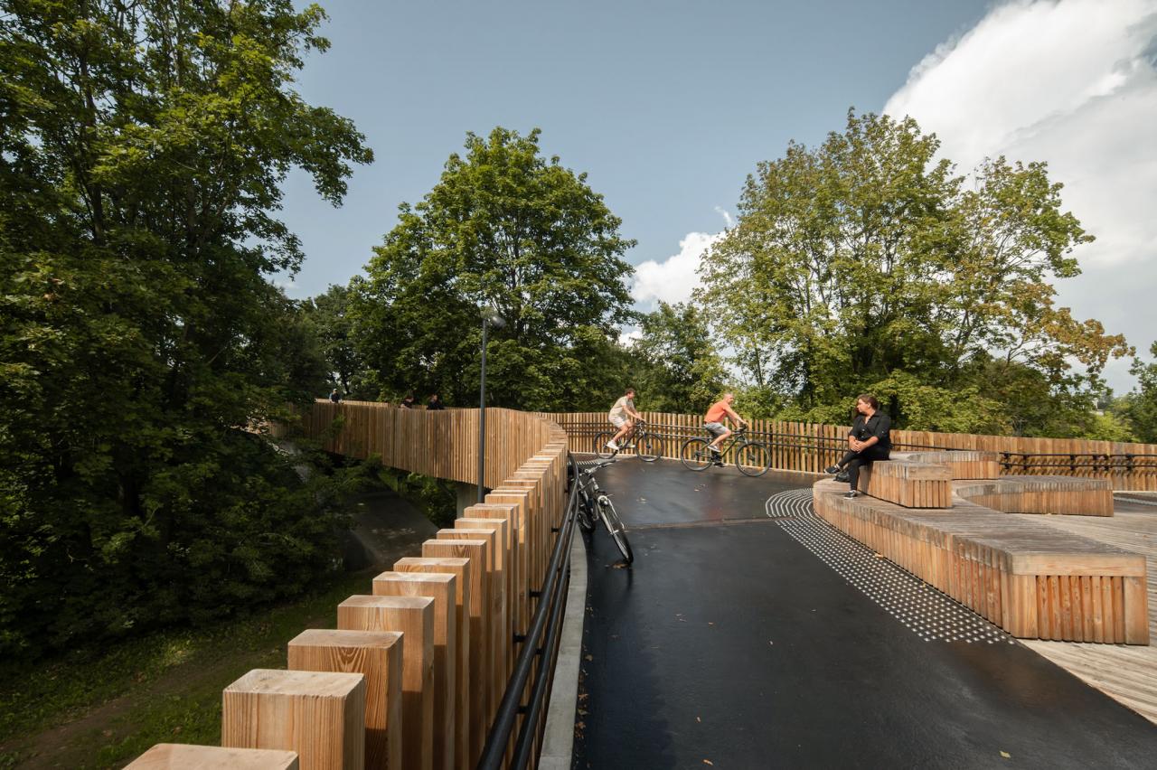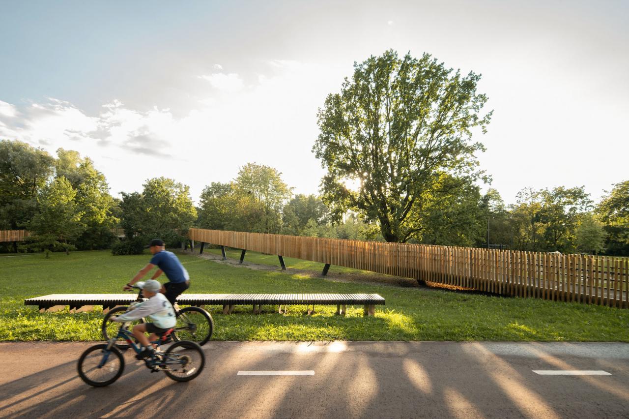 Universal accessibility: The park and arts center were redesigned with ramps, wide pathways, and barrier-free bridges, ensuring accessibility for wheelchair users, strollers, and cyclists. A key update was the new ramp at the pedestrian bridge, replacing stairs.