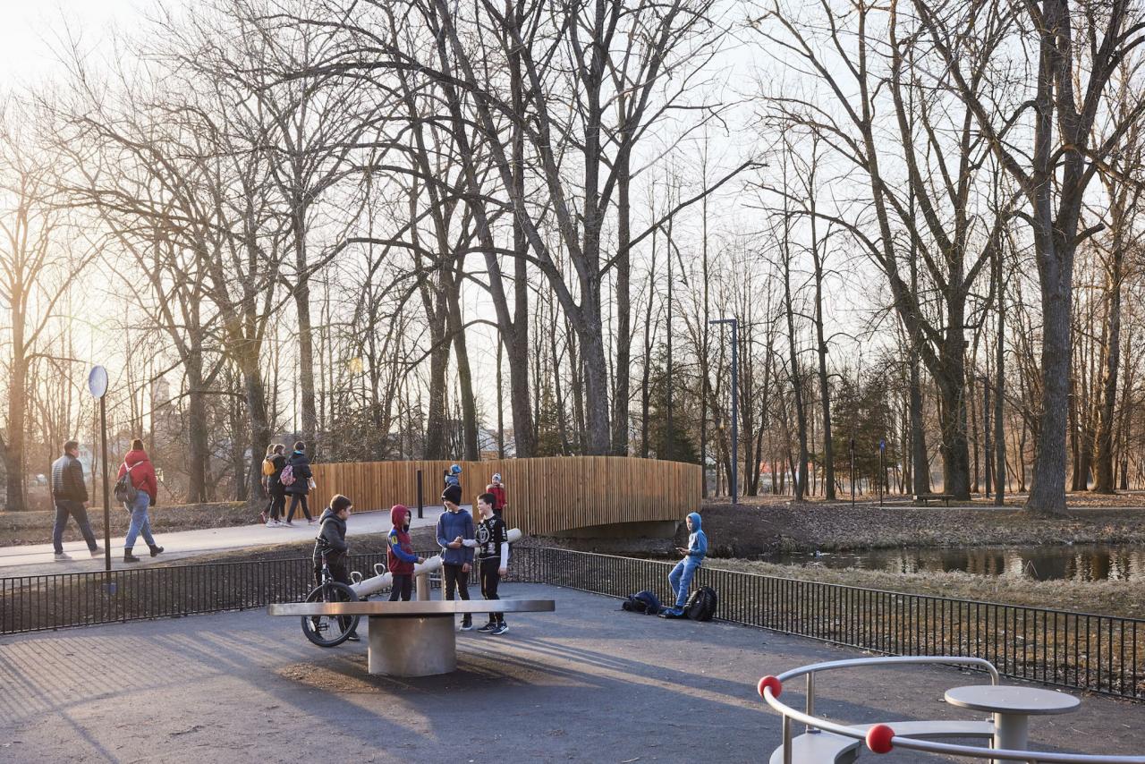 In 2016, Lithuanian architecture favored prominent, statement-making designs. Our approach was deliberately minimal, focusing on subtle interventions rather than bold architectural gestures. Instead of an iconic landmark, we proposed critical yet simple changes, including bridges, new paths, and improved connectivity. This understated strategy proved successful, transforming the park into a well-used, multifunctional space with areas for rest, play, and sports.