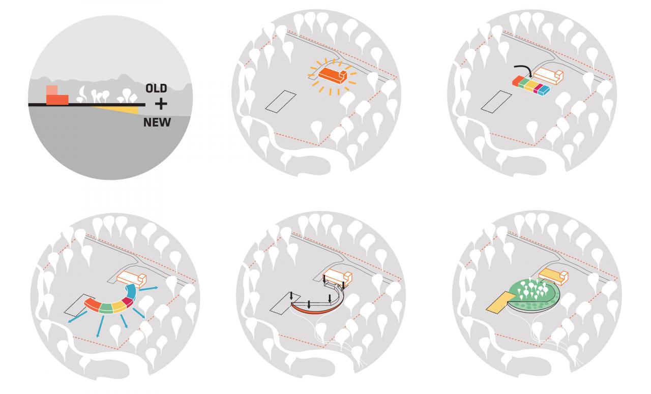 Natural and built environment balance: The park’s redesign maintained its forested character while incorporating artistic and recreational spaces. The curved extension follows the landscape, ensuring a seamless connection between architecture and nature.