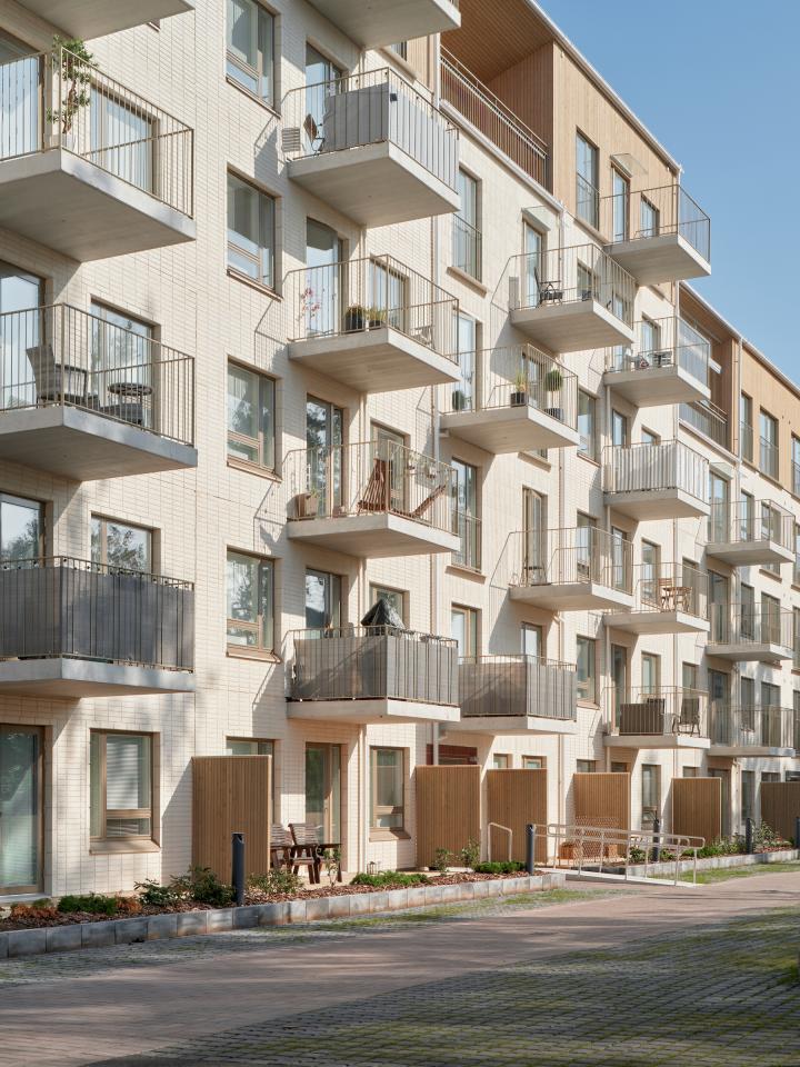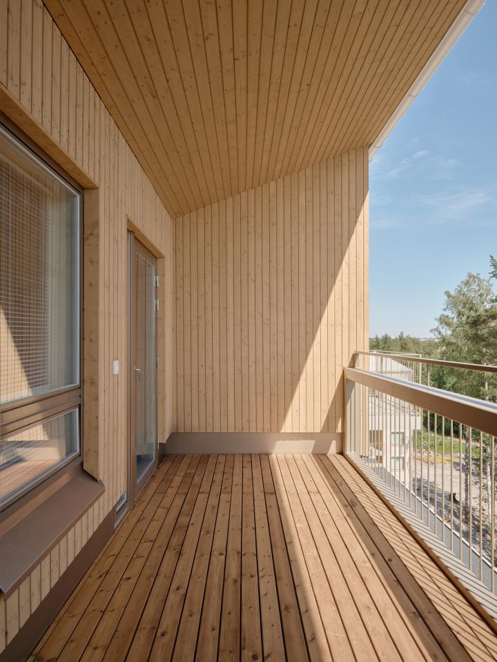 Adaptable and flexible Domino housing is an affordable rental apartment building completed in 2024. It is based on the Living House concept developed by our office, in which the sizes of the apartments and their spatial contexts can be easily modified throughout the whole life span of the building to reflect the changing needs of people and societies, and thus advance the resilience of the built environment. Changes are easy to apply, resource-efficient, and if necessary, also reversible. This has been achieved with a new patented building system that make changes easy, but do not limit the architectural design of the building.