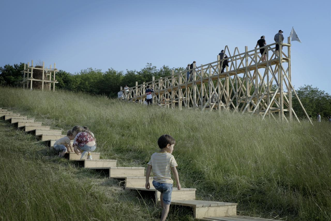 Field of Sparks is a genre-creating blueprint of change: an interethnic, cross-cultural cooperation and enthusiasm. It is a socio-art project and an open platform for architects, artists, and locals to build and nurture a new narrative around the village of Ipolytarnóc and the CEE region, using art as a common language to create new perspectives on identity, community, and local values.