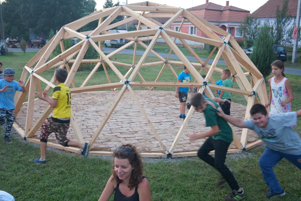 Throughout the years we made several observations about the destructive cycles of communities living in rural areas of the CEE region. Unmotivated youth with low self-awareness and self-esteem, the perpetuation of destructive generational life patterns, a lack of curiosity and hunger for knowledge, baseless fears of nature, limited practical skills, and a preference for horizontal over vertical thinking, stemming from the neglectful lifestyles associated with poverty are a few of these observations. Our platform remains open to all who wish to contribute their time, skills, ideas, support, and care to participate in a project they can be known for as a place and community and be proud of. As a methodology, we aim to involve the youth, but also put emphasis on the participation of the adults to inspire them to become rolemodels of curiosity and openness. Participants of our programs find themselves out of their comfort zone for different reasons. We find great value in building bridges between the seemingly incompatible attributes of: urban - rural, young - old, deprived - priviliged, non-Romani - Roman, academic - practice-based. We have 2 main different approaches in our methodology: 1. Participants have a design phase based on an Artist’s brief (as a semester project for credits, if our partner is a university), where they do field trips to the site, discussions and debates with the local team and then they do the building phase on the Artweek together 2. Everything happens on-site, the program starts with a Circle of Knowledge for 3 days, where storytelling, brainstorming and modeling happen, followed by 5 days of building. The first method requires more preparation concerning materials and tools and the outcomes are precise and highly technical. The second method focuses more on the human connection and soft skills, where materials are reclaimed of found in nature and the outcomes are rather poetical, and metaphorical.