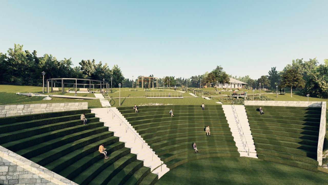 3. Sustainable Design: Eco-design principles were applied in the summer theatre and park, using sustainable materials and techniques. The grass-covered seating in the theatre and newly planted trees in the park highlight the project’s commitment to environmental responsibility.