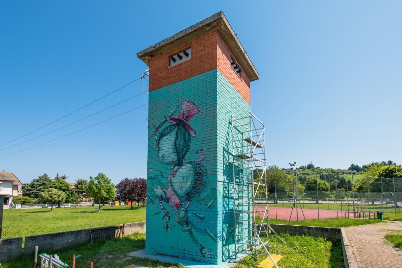 Launched in 2018 with the International Study Days on Francesca da Rimini, the project has promoted a contemporary reinterpretation of this iconic figure from Dante’s Divine Comedy. In 2019, six Italian street artists created murals offering modern perspectives on Francesca. Between 2020 and 2021, the initiative evolved into a participatory process, involving students with disabilities from Viale Trieste School in Pesaro in the creation of a collective artwork for the “Lovers’ Walk.” The spontaneous interaction of citizens with this piece highlighted the potential of public art as a catalyst for social cohesion.