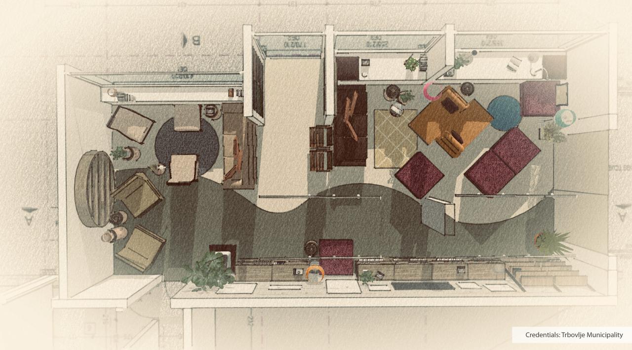 A key aesthetic feature of the space is its adaptive and modular design. designed for flexibility in use from individual reflection to dynamic community gatherings. High-quality, sustainable materials, such as wood, stone, clay plasters, and upcycled furniture, reinforce the commitment to healthier indoor environments while providing a tactile and visually appealing experience. The integration of community art installations and cultural elements further personalizes the space, ensuring it reflects the heritage, identity, and creativity of Trbovlje’s residents.