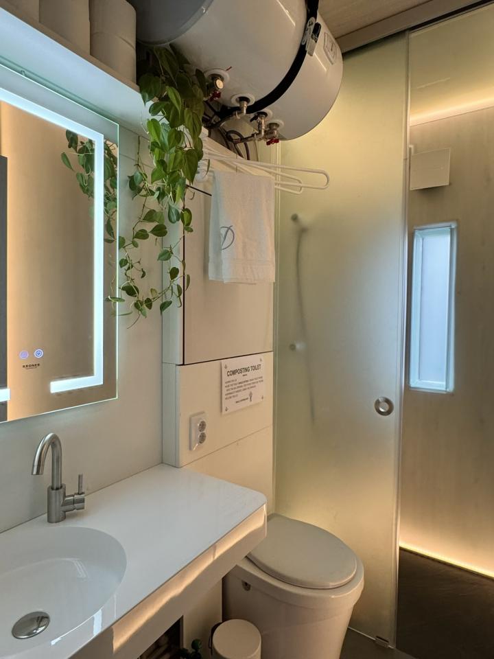 \When it comes to aesthetics and quality of experience for people, our bar was raised even higher than for sustainability. We are fans of Bauhaus and wanted to create something minimalistic and functional, but with exceptional details to comfort. Photos will describe better, but let's first focus on areas where we even had to sacrifice the cost of materials in favour of aesthetics and quality of experience: