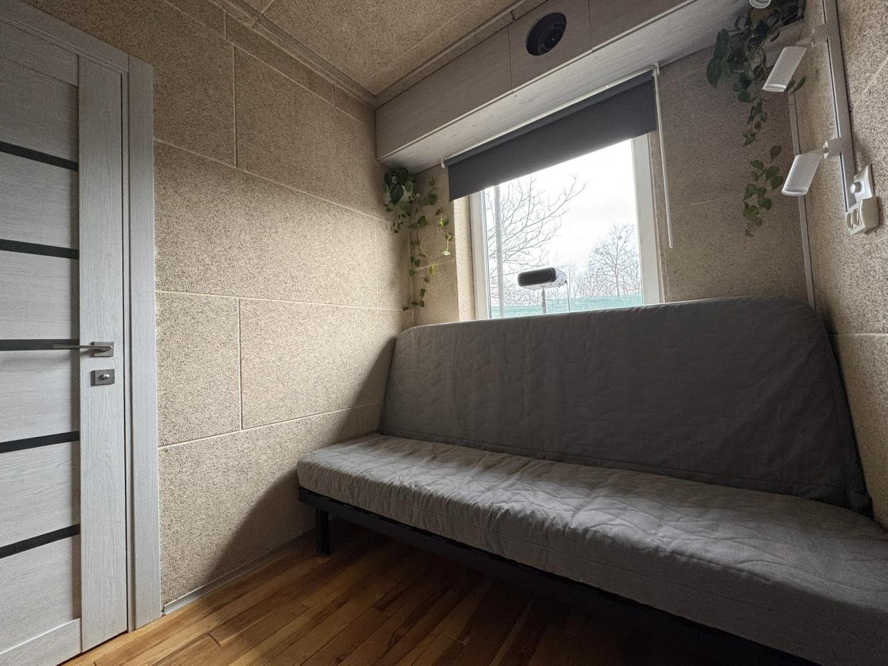 Big windows facing south and west allow lots of natural light and the ability to enjoy sunsets. Air recuperators are controlled by air quality sensors. Bathroom has glass walls lit from inside using smart LEDs, creating outstanding shower experience.