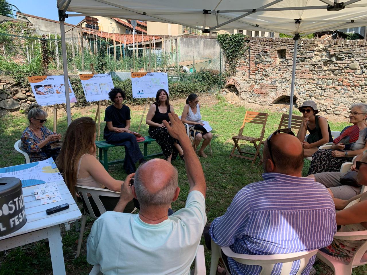 Mentioning here one of the 10 pilots (Albugnano, Italy), the project addressed the increasing demand for regaining a sense of belonging among inhabitants and valuable storytelling towards visitors. It is about providing informative signage and experimenting with the tactical urbanism strategy to reclaim public spaces and reopen long-abandoned locations for temporary events. The square has been collaboratively implemented through a tactical urbanism action and used during the yearly theatre festival. Furthermore, we co-designed a service prototyping performance for the festival with the playwrights and performers: they staged citizens from the future who spoke about the Albugnano of tomorrow.