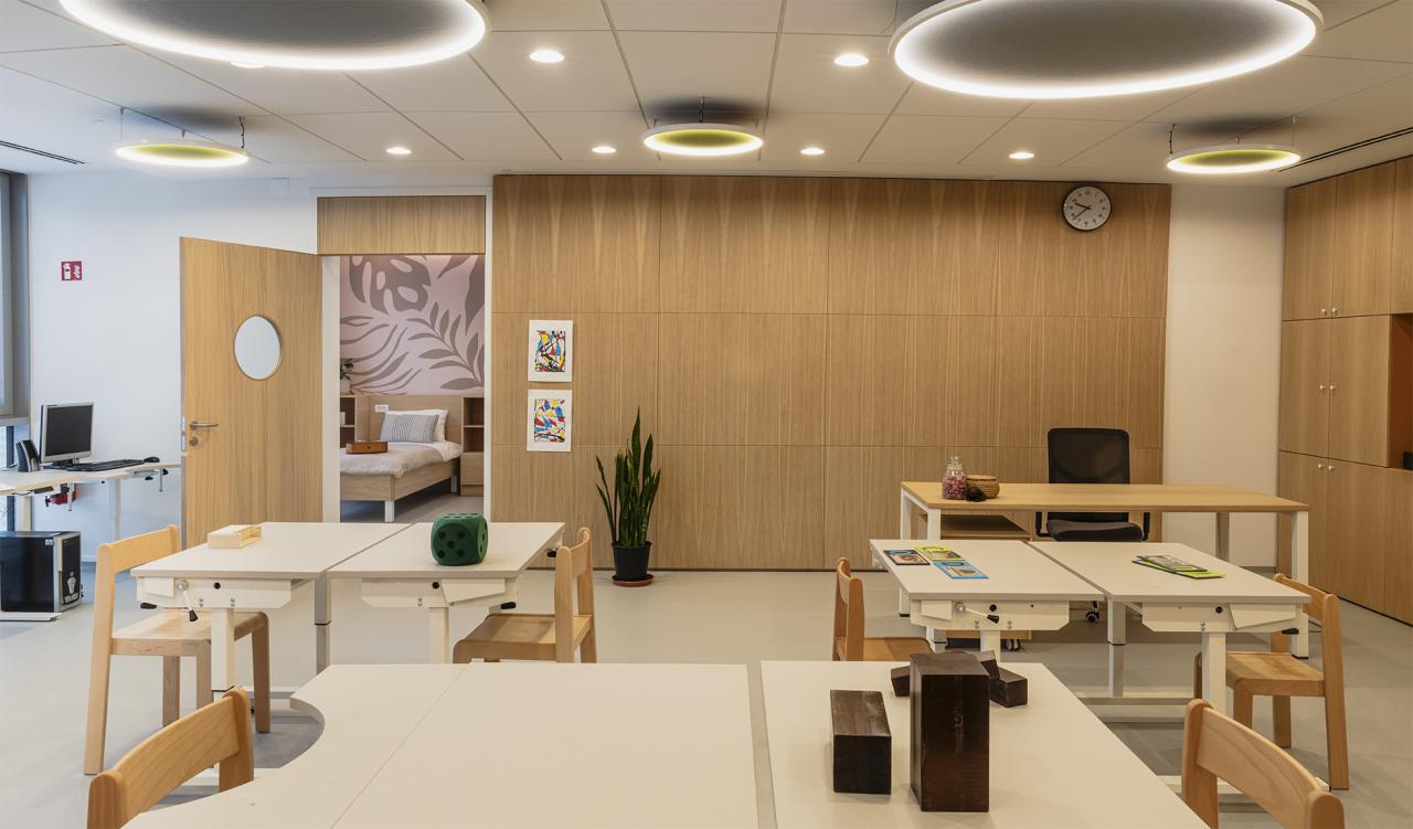 Staff who work daily with students (educators and therapists) played a crucial role in designing functional, supportive spaces tailored to childrens needs. There are crucial benefits for them too-they work in these environment for 8 hours and light and how pupils feel and behave affect them on daily basis. Workers that have healthy workplace conditions are happier and healthier-and as a result work better.