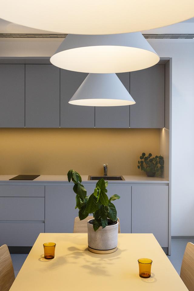 Acoustic lights were integrated to improve classroom acoustics and create a calming environment. Indirect lighting in the calming room softens the atmosphere, reducing sensory overload. The kitchen and corridors are lit to ensure clear visibility while prioritizing safety, enhancing the overall comfort of the space.