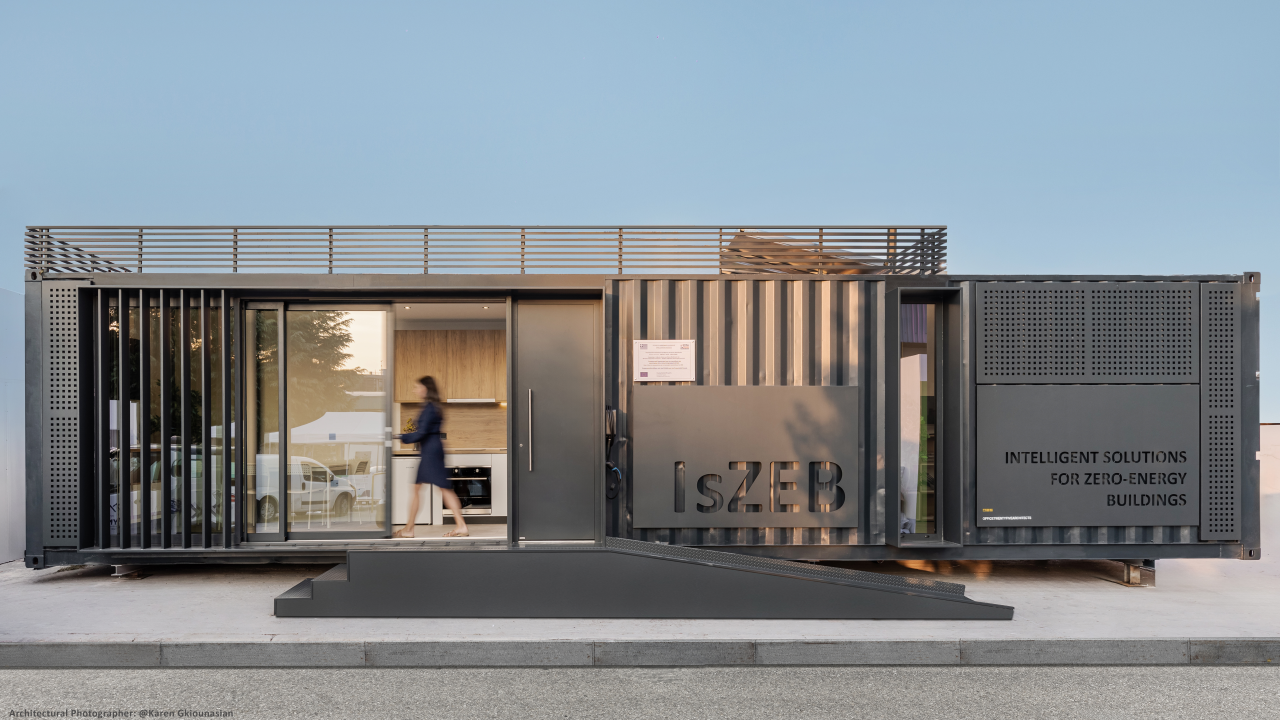 Operating within a dynamic framework, the project incorporates both existing and emerging technologies to evaluate, provide guidelines, and highlight solutions that enhance infrastructure intelligence, energy efficiency, and sustainability throughout its lifecycle. Beyond focusing on energy efficiency, the project prioritizes creating spaces that ensure thermal, visual, and acoustic comfort, hygiene, safety, and usability for occupants. The IsZEB Container adheres to both national and European standards and directives, the EU SET Plan, and the European Smart Readiness Indicator (SRI) methodology. Additional layers of control evaluate its performance in achieving modern operational and accommodation standards, adopting a human-centered approach. The infrastructure achieves zero energy demand through its photovoltaic and battery systems, while its state-of-the-art ventilation system, featuring an air-to-air ex-changer with over 90% heat recovery efficiency, ensures optimal air quality without additional energy consumption. A highly effective external thermal insulation system combined with the internal lining system, entirely eliminates energy losses. This infrastructure optimizes energy resources while maintaining zero environmental impact, preventing biodiversity loss, and minimizing harmful human behavior. It also incorporates recycling capabilities, embodying the essence of life-cycle thinking—from conception to development.