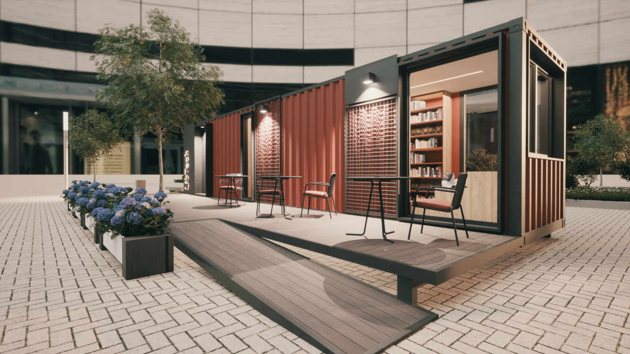 Accessibility is central to its design, extending beyond disability inclusion to encompass educational, geographical, social factors. It ensures thermal, acoustic, and visual comfort, user-friendly systems, and an adaptable ergonomic layout. Whether housing engineers in remote locations, teachers in tourist hubs, or serving as mobile libraries and cultural venues, the container guarantees a dignified, comfortable space. With zero-energy demand, recycling capabilities, and eco-friendly systems, it fosters sustainability while promoting inclusion through energy independence, directly addressing energy poverty.