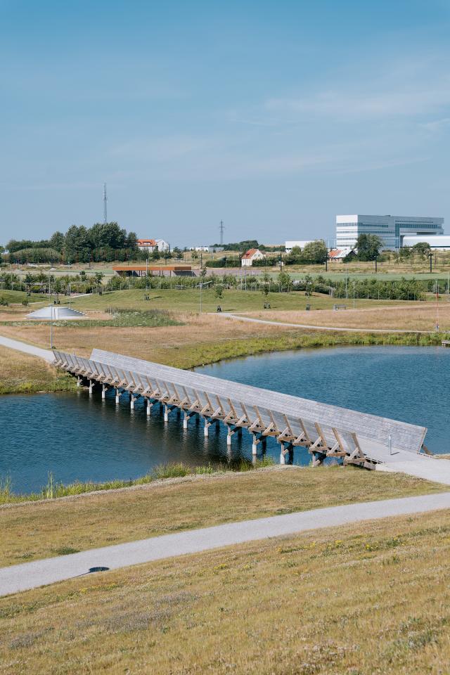 The 21-hectare park is as big as 30 football fields. Only one parkr is bigger in Lund. In Kunskapsparken there are plenty of open green spaces, but also loops and paths to walk or run on. There are ponds and streams with trestles, bridges and jumping stones, a playground, an outdoor gym and a dog run. There is also a special riding trail. The location is just between a world class research area (ESS, MAX IV and SVS) and traditional high-quality farmland. Rural/Urban is the guiding principle