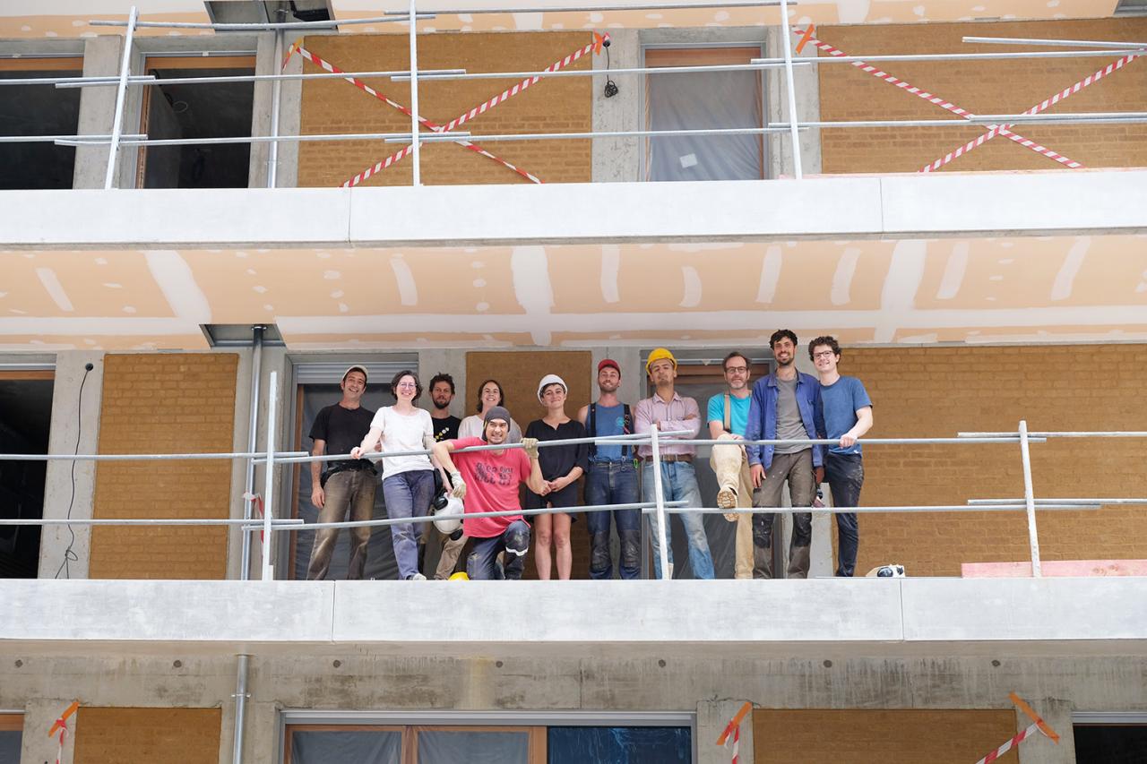 Les Grands Moyens insulate with straw bale and build in raw-earth masonry using multiple techniques: adobes, compressed earth blocks, cob, rammed earth, plasters, etc. We also offer technical support and trainings to companies and individuals.We use the least-processed, locally-sourced, easy-to-use materials to maximize the durability and carbon footprint of our constructions. The cooperative specializes in complex, innovative new-build and renovation projects for public and private clients. Our aim is to dispel preconceived ideas and show that it is perfectly possible to build desirable, comfortable cities using these natural materials.Our social model is based on fair remuneration, equal pay, gender equity and horizontal hierarchy (direct democracy, rotating co-management, etc.).