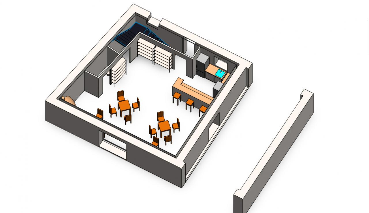 The equipment in the premises (table, chair, shelf, etc.) will be second-hand or made from reused materials.
