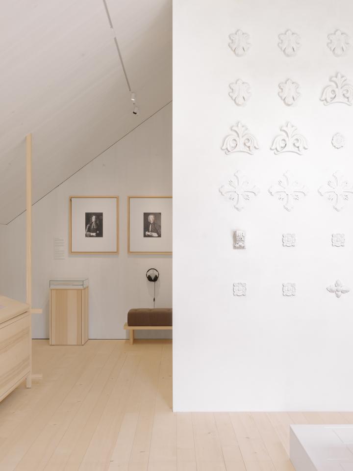 The design process of the Museum Bezau was deeply shaped by team-based work, where communication on equal terms and development of ideas within the team played a crucial role. The project brought together a diverse range of fields, including architects, exhibition designers, curators, civil society, volunteers, craftspeople, restorers, graphic designers and writers. The exhibition designers and curatorial team engaged with the local community, crowdsourcing knowledge and object loans, which significantly enriched the museum’s narrative. The team further worked with carpenters and restorers, refining the details of exhibition furniture and carefully implementing it on-site. Many crucial decisions and refinements were discussed on-site, striving for the best possible solutions and ensuring that the final result was reflective of its context. Based on the architectural design, graphic designers developed the museum’s visual identity, integrating text and graphics. The continuous communication between diverse disciplines ensured that the project addressed practical, visual, and cultural aspects, resulting in a cohesive space that reflects the contributions of all involved.