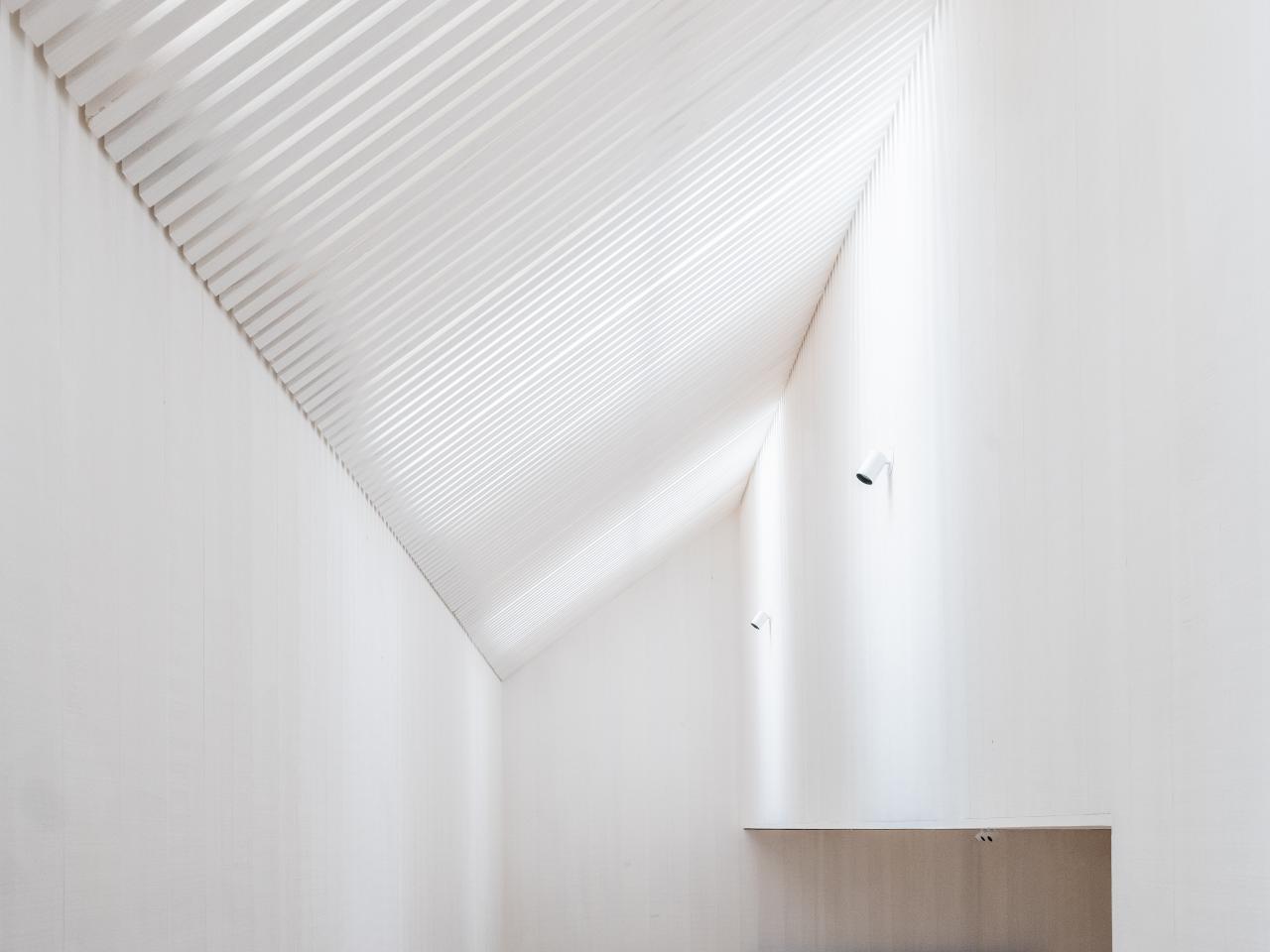 As a new addition to the permanent collection displayed in the building’s historic section, the extension accommodates visitor reception, small events, and a variety of exhibits. The interior arrangement is characterized by horizontally and vertically interlocking spaces, interweaving the old and new in a way that can be experienced spatially. Between dark and light, high and low, narrow and wide, a diverse experience is offered. These captivating dialogues create a harmonious ensemble.