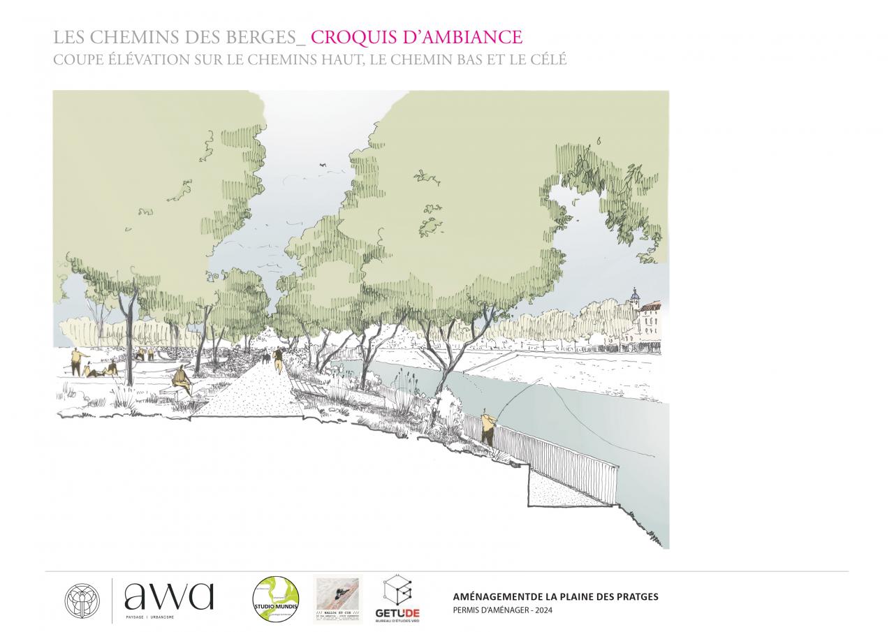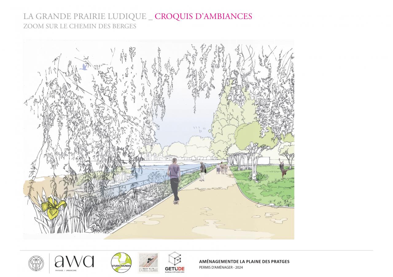 The redevelopment of the Pratges through trees and meadows is a response to two major challenges: the recreational vocation of the site and the biodiversity of a flood plain.