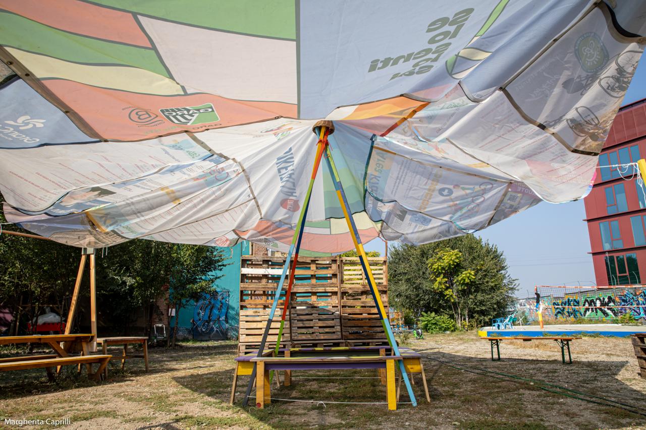 Blocco Comune proposes activities to the community made for the most part with reutilised and second hand materials: a practice that is in harmony with the district, where the presence of temporary set-ups implies the existence of materials that can be transformed.