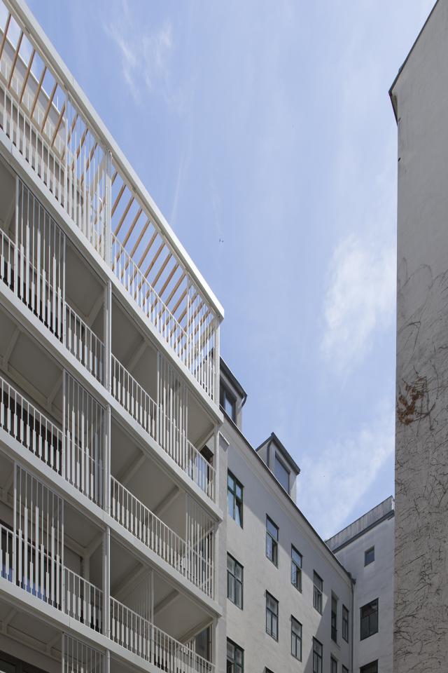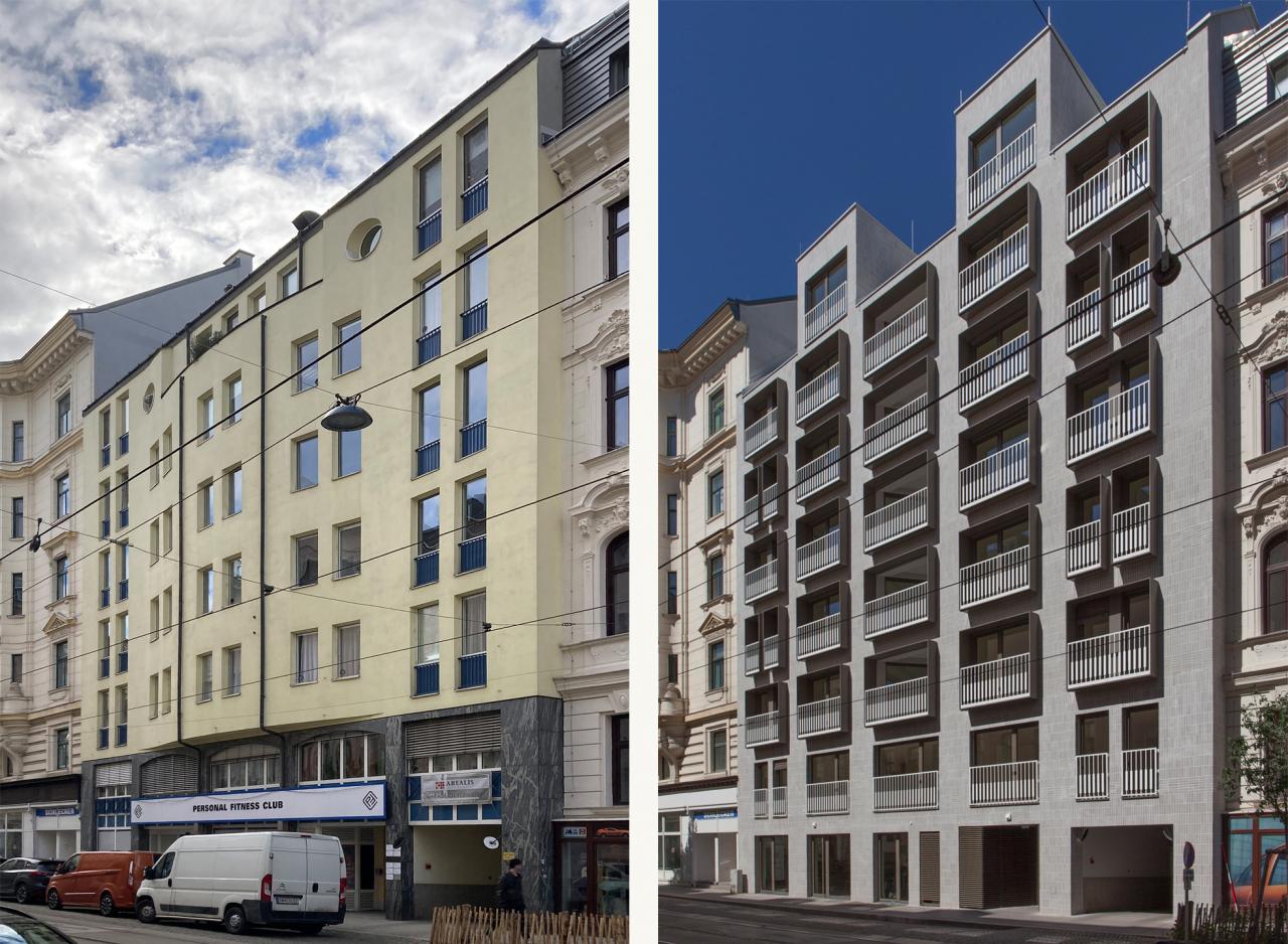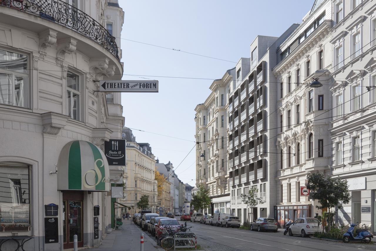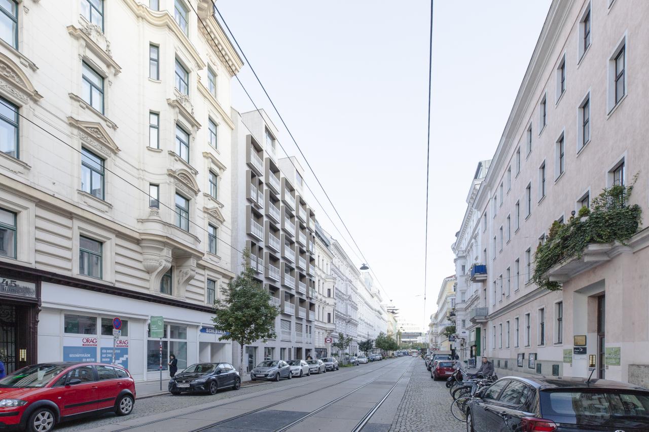 The visual factor may also play a major role for some, as the new image of Porzellangasse benefited greatly from the revitalization. The newly realized building blends in with the appearance of the adjacent buildings due to its classically structured facade. The new look of the building is emphasized by the adjacent typical Viennese old buildings and together they form a harmonious streetscape.