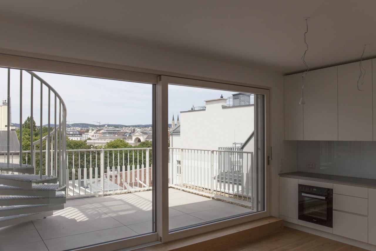 As with any other project, the client's expectations and ideas are considered first. Demolishing the existing building was never an option and would have been extremely difficult due to its location on Porzellangasse, which is served by a tram. For this reason, the existing building and its existing structures were examined in order to create the best possible use for them. The aim was to build apartments that would meet the contemporary standard of a city apartment and could be built under the given conditions. These apartments were also to be modernized and optimized to the maximum. The value of the apartments was increased by adding balconies and terraces.