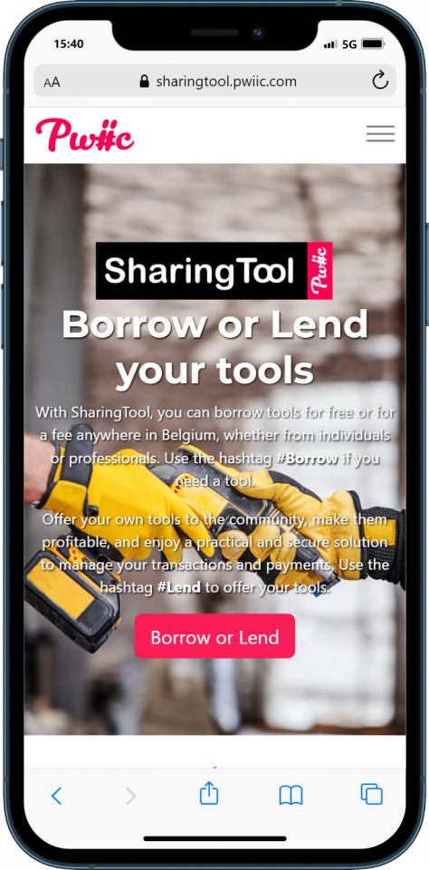SharingTool is a tool-sharing platform for neighbors, individuals, and professionals, launched by Pwiic.com, a cooperative service exchange platform with 200,000 members in Belgium. First introduced in Brussels in September 2024, it quickly expanded across Belgium, with 20,000 service providers offering their tools for rent.