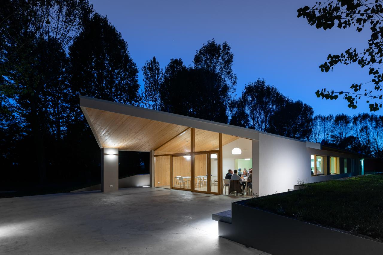 The use of wooden X-LAM construction techniques is a symbol of this approach, evident in the two extensions dedicated to common and recreational activities, which correspond to the intention of proposing very simple and sober forms, without the need to add decorative elements or excessive spatial articulations. Quality spaces ready to welcome, where the choice of wood as a construction material left exposed, together with the house-shaped architectural section, amplify the effect.