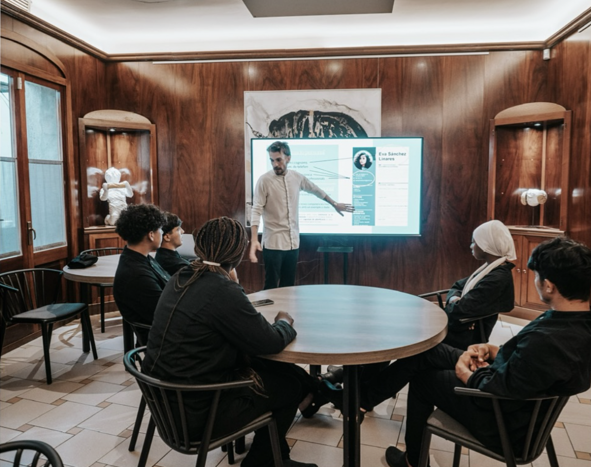 The Can Xapes gastronomic space features spacious, well-equipped facilities, specifically designed to enhance motivation and support students' professional development in both culinary and service areas. Training takes place in an environment where no distinction is made between industry professionals and trainees, ensuring seamless integration and fostering a collaborative work dynamic. This model promotes team cohesion and an optimal learning atmosphere, prioritizing an inclusive and supportive environment.