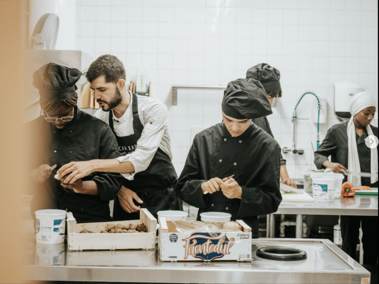 Training alongside industry professionals provides participants with first-hand technical knowledge, helps them develop essential skills in a real work environment, and enables them to adapt to the dynamics and requirements of the labor market. This direct interaction not only enhances their professional development but also allows them to build a network of industry contacts, facilitating and accelerating their integration into the sector and even into the restaurant itself. As of 2025, 50% of the professionals employed at Can Xapes have been trained through the Tr3s Accions program.