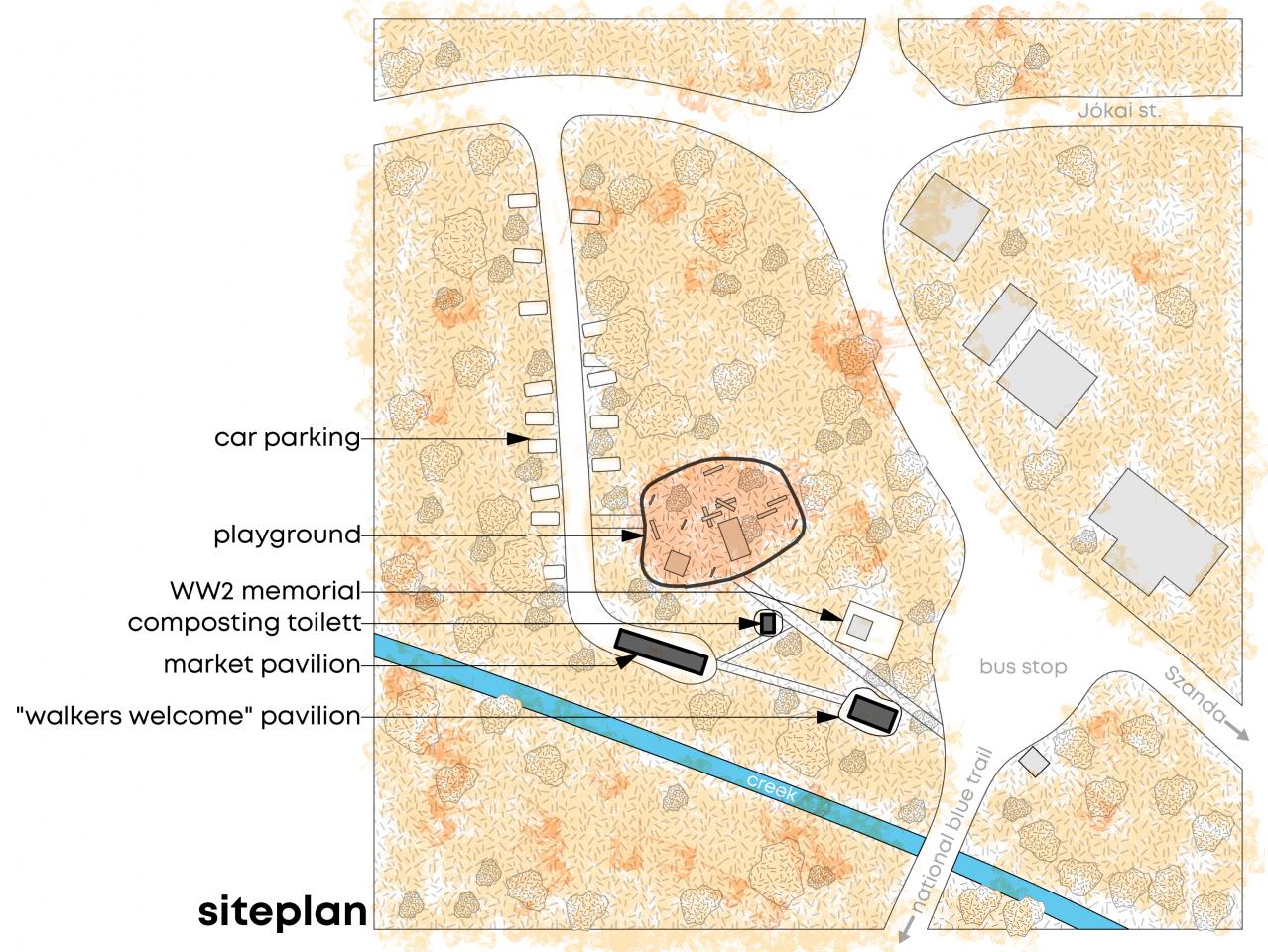 The ‘Walkers Welcome’ rest stop is designed due to a tangible popular will expressed clearly in the 2024 municipal elections the current board has been nominated through. The planning and design of the rest stop take place in close cooperation across the municipal board, the mayor, two acitve local citizens, as well as the children attending the local kindergarten and the ‘BPS Green School’ who also take active part in the process. When completed, it will bear witness to the resilience, potential and innovative skills of a village, against the backdrop of an underprivileged regional status, lack of resources and bargaining power on a national level. The cooperation of stakeholders across sectors: 2 local NGOs are involved, working closely together with the municipality, integrating two distinct communities in the village: recent and generational residents, distinct mindsets and skillsets that so far have had a lack of platform to cooperate. This cooperation opens a new chapter in the life of Szanda-Szandaváralja, and is exemplary also on a national level, where a relocalization from cities towards rural areas have created populations of ‘newcomers’ from the city and original residents with generational roots in the given village or town. There is a lack of trust between stakeholders and this project already serves as an instrument for healing. The project will not only be created with the active involvement and initiative of locals but will also provide a space of recognition for hikers taking the ‘blue trail’ and other visitors. This little facility, designed and to be built with the involvement of older generation of locals and young age kids will be a platform for closing intergenerational gap and caring. We want to create and accessible resting stop, a simple yet thoughtful structure that represents these values and can be a best practice for other similar scale rural sites in Hungary.
