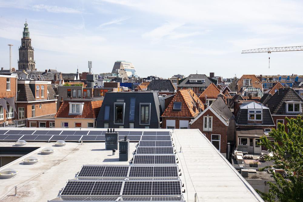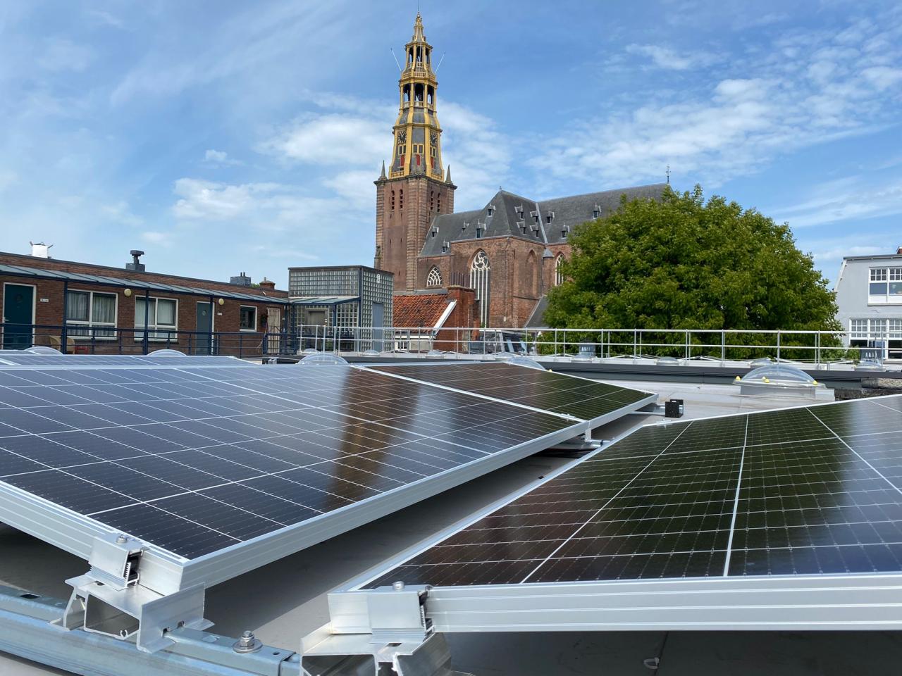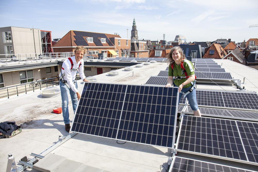Christian Housing Foundation Patrimonium and the GOED cooperative will jointly alleviate energy poverty with solar panels on two roofs of the housing association. At the end of May, a total of 222 panels were installed on the roof of Schoolholm 10 and 17. The sustainably generated electricity is sold. In this way, about 20-25 households are supplied with green energy. And the proceeds are distributed to tenants in energy poverty at Schoolholm, who live under the GOED roofs.