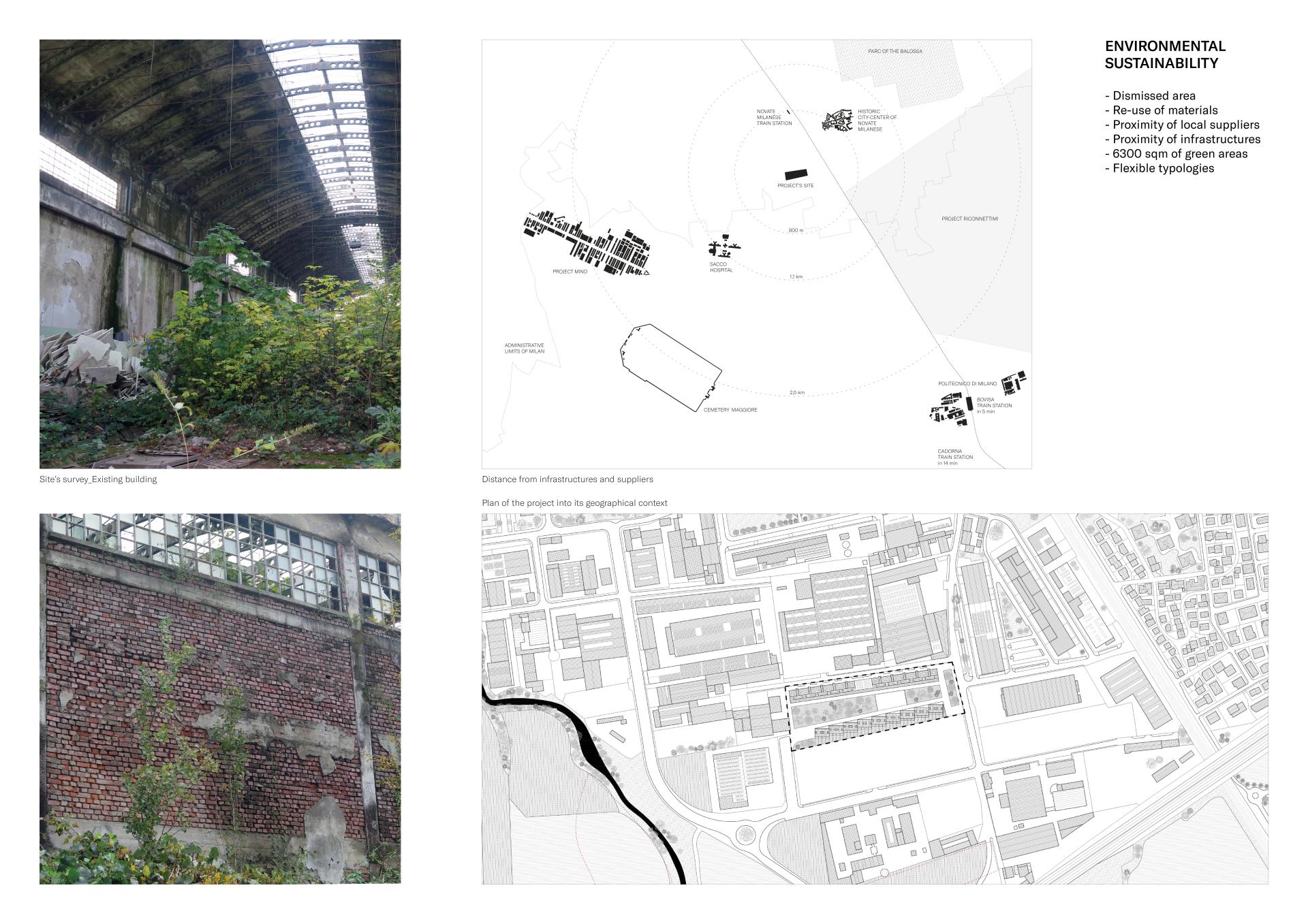 On one hand, the land on which is taking place the cooperative is a dismissed area of the Lombardy’s region. Re-qualification of the later means that construction can happen without reducing once again the quantity of fertile soil since it is already a polluted one, besides it will enhance a regeneration of the quarter and finally the impact on the environment can be lowered by re-using materials already present in the area.