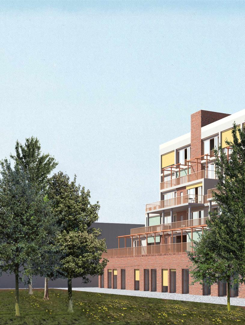 Moreover inside the architectural proposal, a great park has been integrated as the heart of the cooperative. In addition of the private gardens for the row-houses. In total it’s 6300 sqm dedicated to green areas. The relation with nature is encouraged also with the roof-gardens at the disposal of the inhabitants to grow their food.