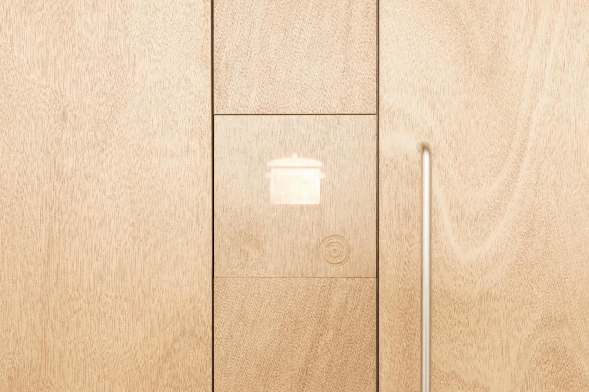 Pictograms are images drawn on labels very common in the daily life of autistic people. We have developed pictograms which are integrated into the furniture and appear only when necessary. The pictogram is engraved on the back of a wooden plate inserted in the furniture. A thin LED panel is added to the back of the plate, it is connected to tactile sensors and lights up if touched. With the light off, the pictogram is invisible. The system can be integrated into existing pieces of furniture and the plates are easily interchangeable.