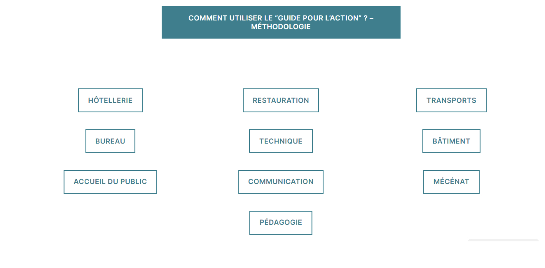 Early on, the creation of the guide book for sustainable performing arts associated a focus group composed of 10 members embodying both the performing arts sector as well as our members. The co-designing of the book along with this focus-group allowed us to cover a large spectrum of environmental impacts and associated solutions, that are presented in the guide book.