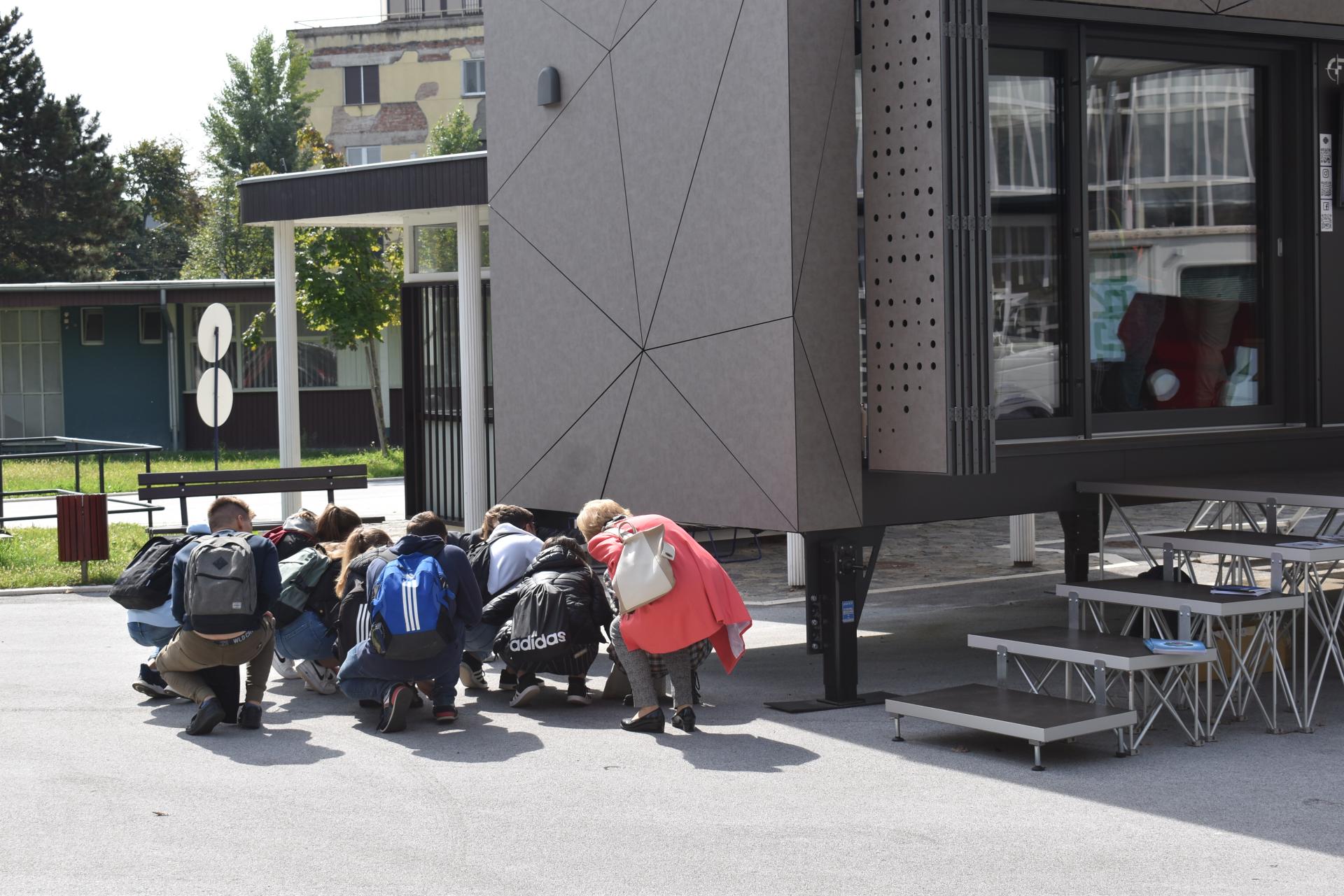 Citizens and civil society visited MUZA during the roadshow events and actively participated to activities in and around MUZA. The activities were carefully tailored to their interest and background, ranging from primary school, high school and university students to professionals, families with children, and others. In addition to the NZEB-compatible materials, systems, and technologies implemented in the MUZA itself and accessible to visitors, additional tools were developed and prepared to facilitate events, such as: