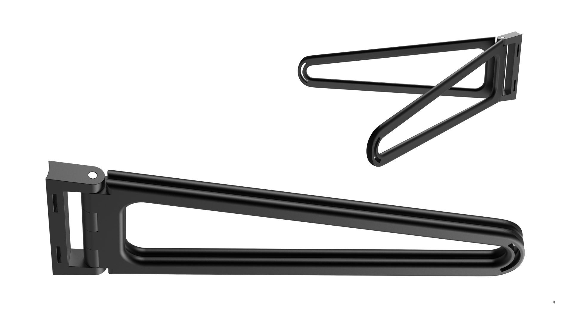 Thanks to the reduced design and the few parts that "ZIEH" consists of, the material costs are generally not particularly high. Since the connecting arms are identical, tooling production is simplified. The simple construction is easy to maintain and repair. Made of aluminum, or other metal with similar properties, the main components are easy to recycle. The textile bands could be made of cotton or a particularly robust and resistant synthetic fiber. The rubber patches that protect the surfaces of the contact surfaces and provide additional support could be made of a biological rubber. The compact size of "ZIEH" also facilitates shipping and reduces packaging material.