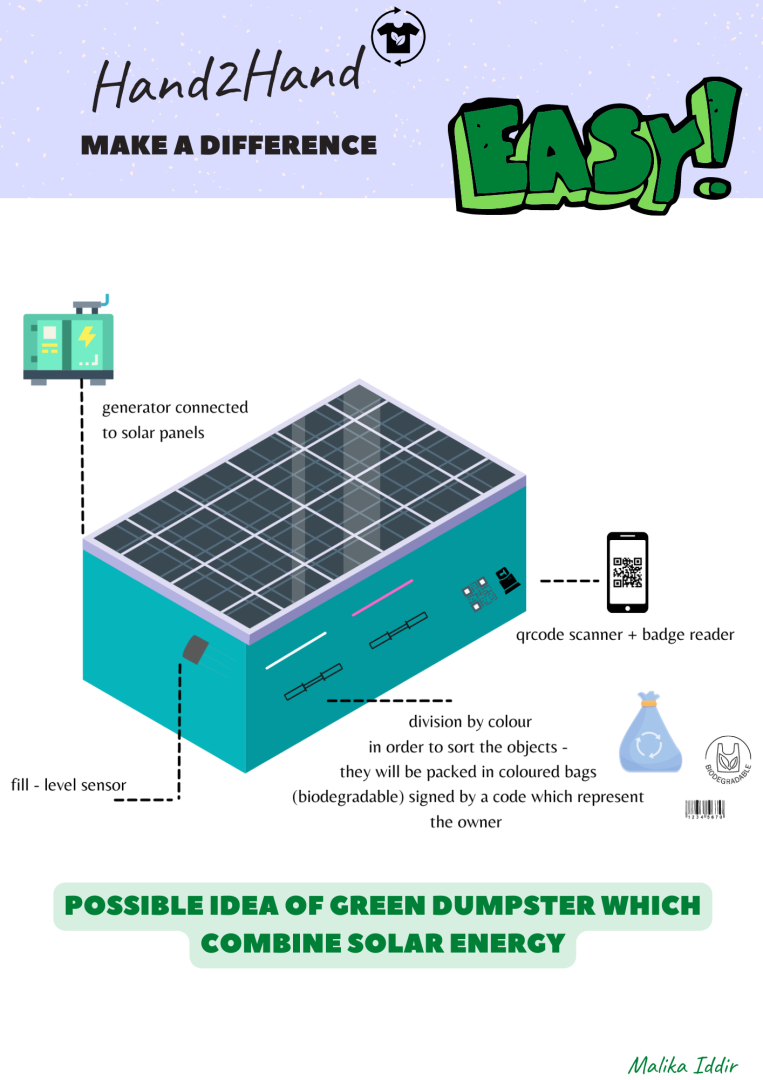 The idea I am proposing has many aspects that make it inclusive: in fact, there is the idea that the dumpster should not be anonymous but should be decorated so that it can be seen with a different conception, that it is not a waste container. This means that different designs can be shared by the citizens and approved by them, so that in each city the bin takes on the colours and ideas of the people who live there.