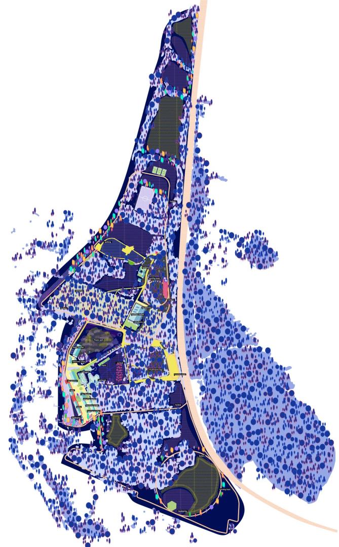 The overall territorial strategy of A Non-Binary Ecology concerning the Namur Sart Hulet site focuses on completing the existing landscape sequences through vegetal masses and ‘third landscape’ corridors.
