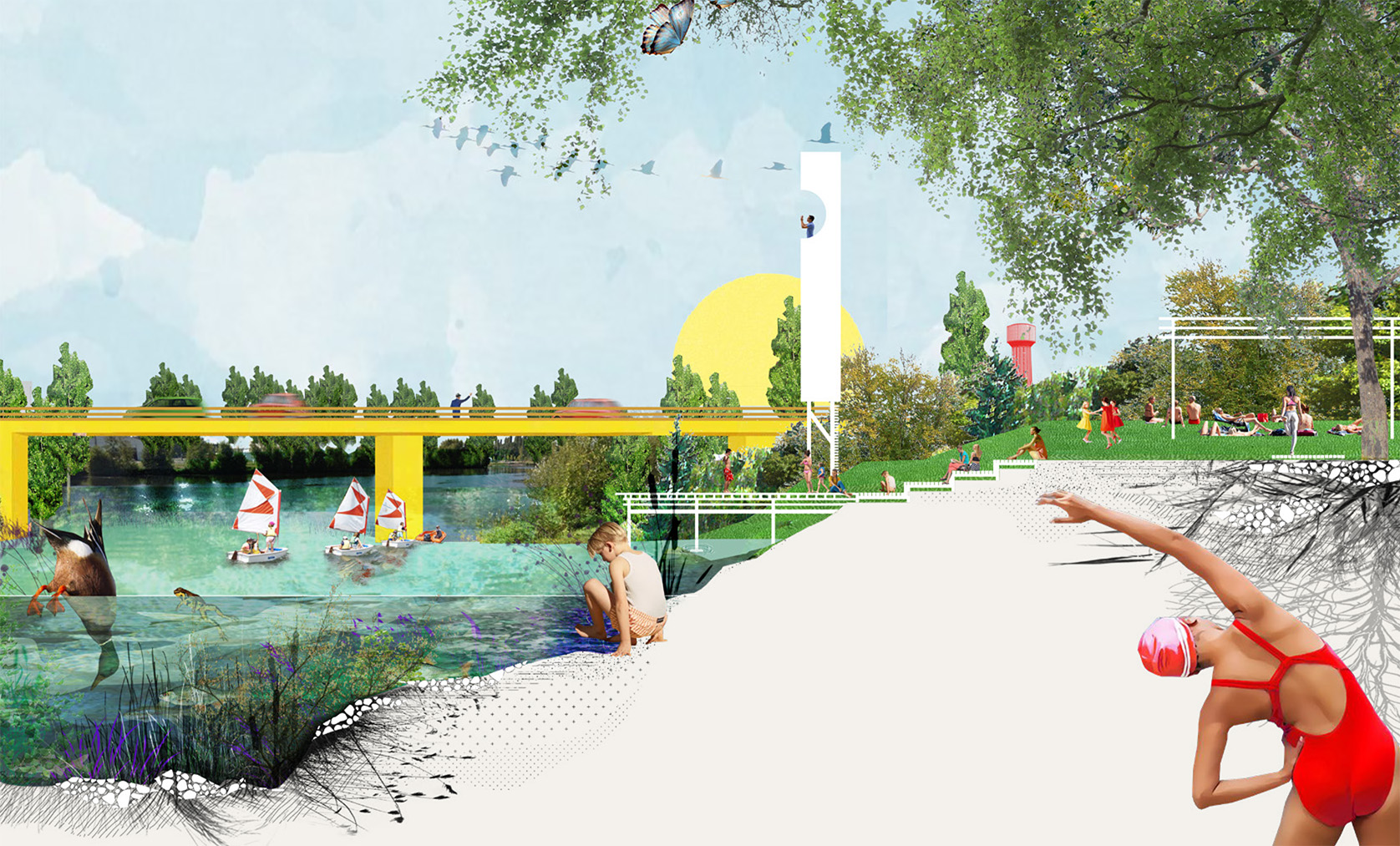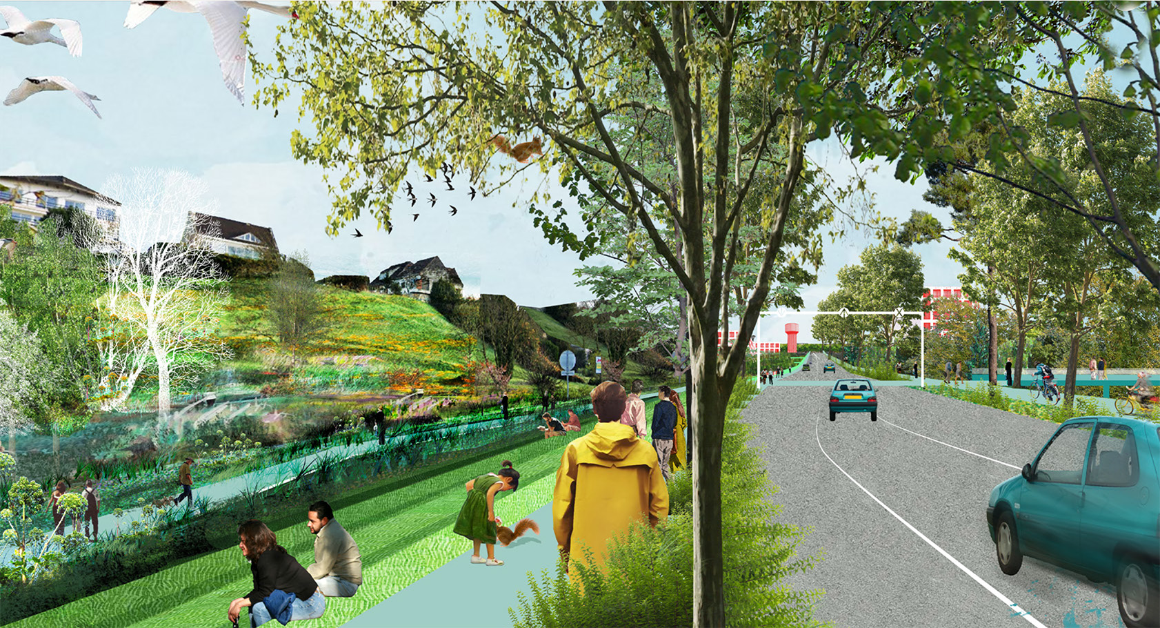 Our proposal seeks to magnify the diversity and complexity of the landscapes and ecosystems present, by amplifying the presence of water in and around the city. We make consequences of global warming (flooding), a project support and a new urban aesthetic assumed. The water of the marsh, the water of the rivers and the water of the rain and the water of phreatics are a complex and extremely ramified system that would enrich the quality of public spaces. Water will be omnipresent in the public space helping to diversify the landscapes and plantings, to provide habitats for wildlife, to fight against the heat island and to offer fun spaces.