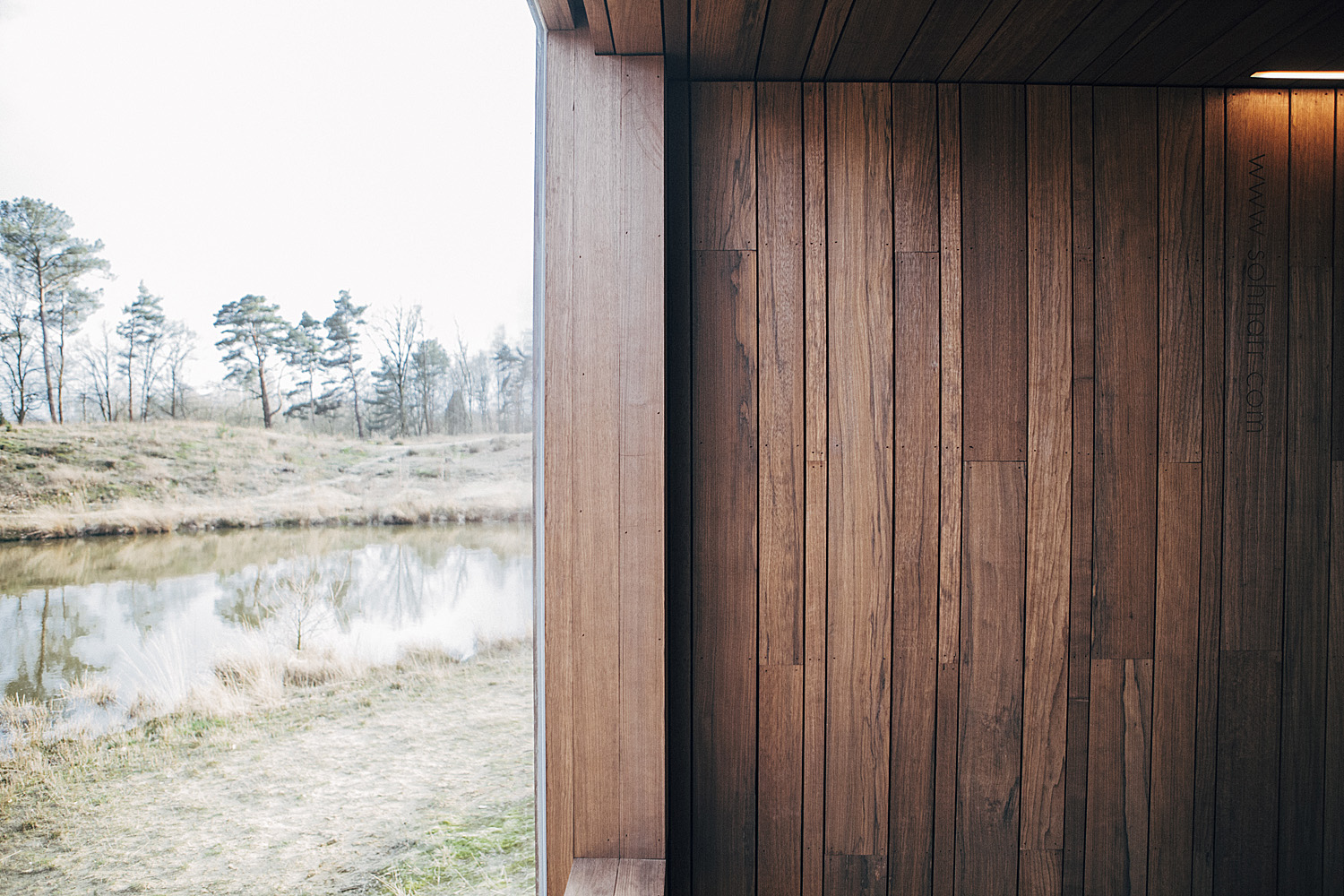 Since only one wall of the Sjel is transparent it can be planted on sites where nature is easily overlooked by the overtaking surroundings and placed in such a way that this natural area is exactly what you are looking at while sitting. This framing makes people aware of the fact that nature is still there and how important it is to preserve it.
