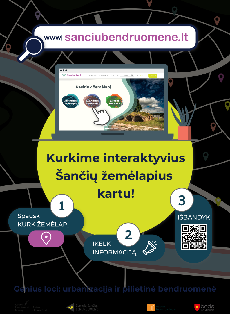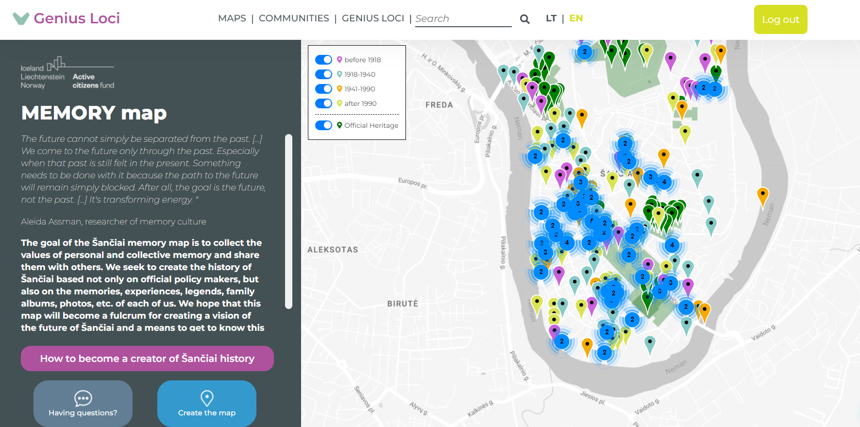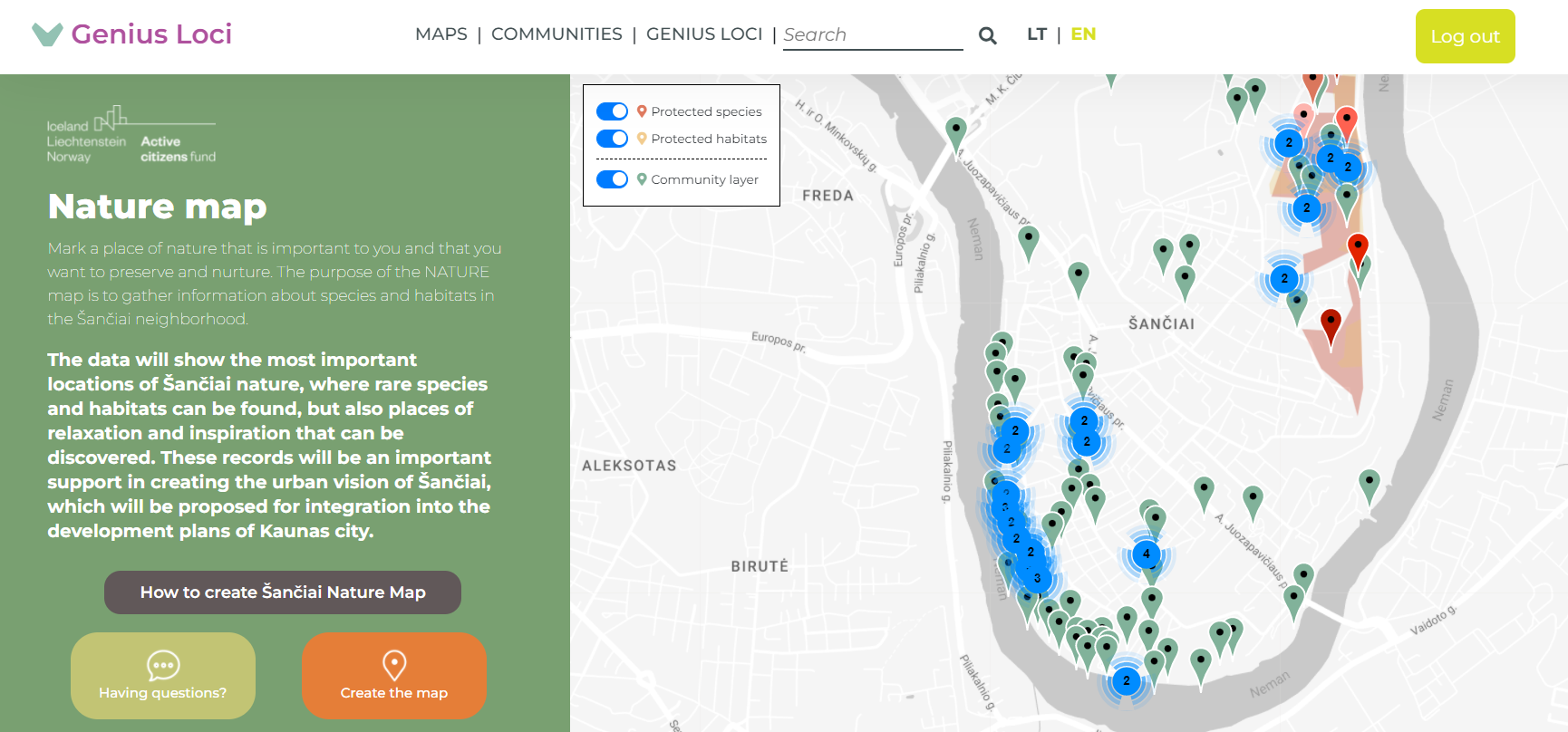 Genius Loci is the creation of interactive digital maps that create data bank to inform the future urban development of Šančiai district. The maps are a tactic to safeguard against repeated violations of the the public interest by Municipal and private developers in which places are seen as 'tanbula rasa' in which profit value is extracted. Each map reflects the local people, place, stories and nature as created by local people. Together, the maps create conditions for more active participation in democratic processes, strengthening and enabling collective citizenship. The target group of the project is the activation and energization of the residents of Šančiai.