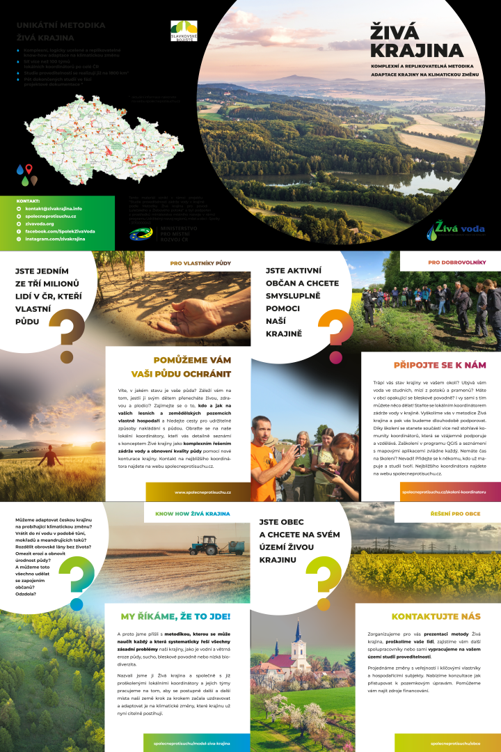 The Living Landscape methodology approaches the area as a synergistic whole and offers solutions for both farmland and open countryside. It works conceptually always in the catchment area of a given stream so that water is retained over the entire catchment area through a series of sustainable, nature-based measures.