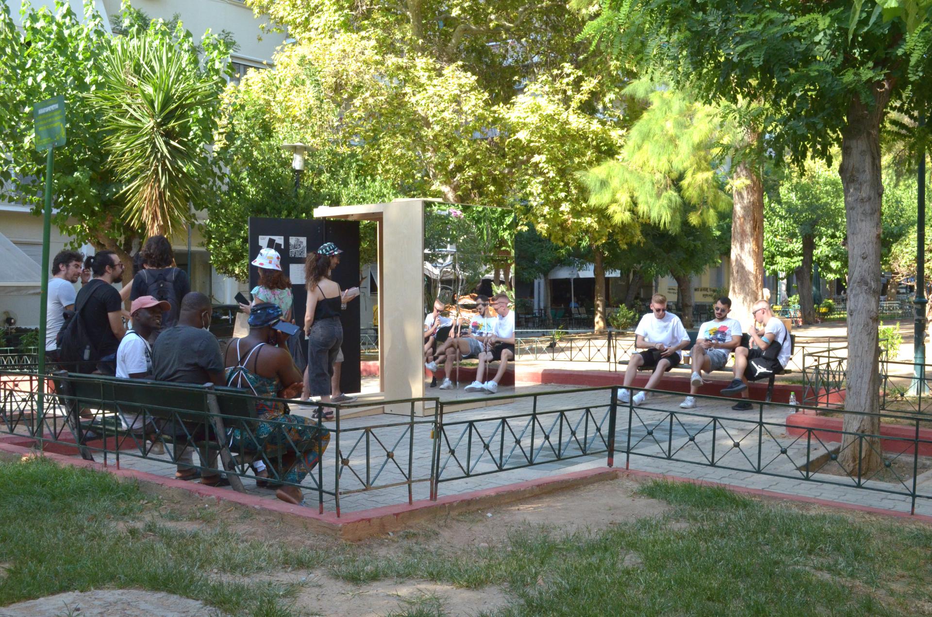 A crucial aspect during the development of the project was the aspect of cultural inclusion. Many neighborhoods around the center of Athens, such as Kypseli, are characterized by high levels of social diversity and multiculturalism, a fact tightly connected to the multiple "migration waves'' of the last decades. Thus, one of our main concerns during the phase of design was to form an interface that would be inclusive and accessible (in terms of language and cultural background) to as many residents as possible. Consequently, all the digital and printed material were translated in 4 languages commonly used around the centre of Athens (greek, english, french and arab), to engage the majority of possible users. On a physical level, one main concern was for the infrastructure to be accessible to people experiencing disability. For this reason, a ramp was placed in the entrance of the infrastructure, and all the infrastructure can be used by people disregarding the height (covering the needs of participation, to people of various heights, children, wheelchair users, elderly people and mothers with baby carriage).