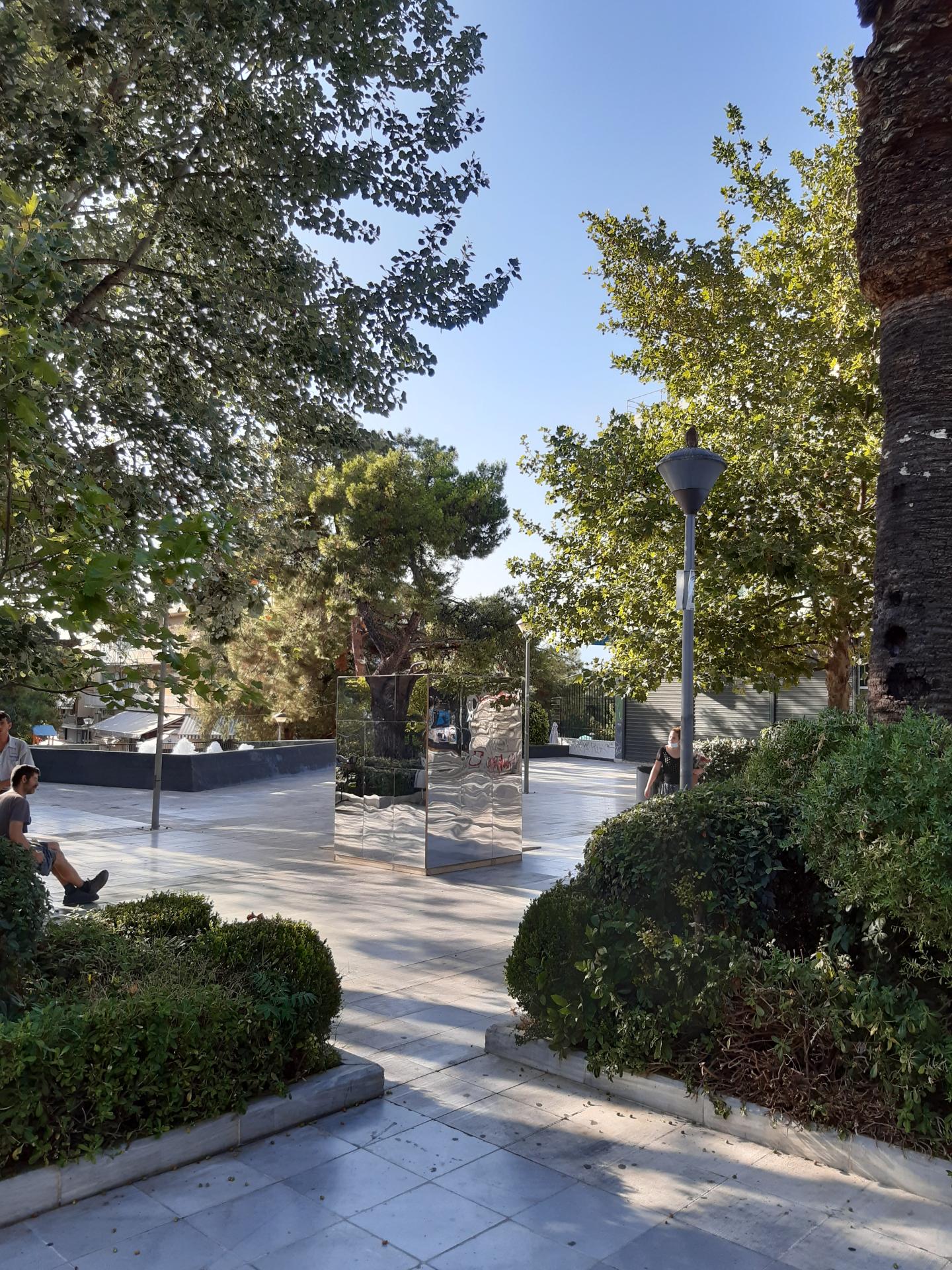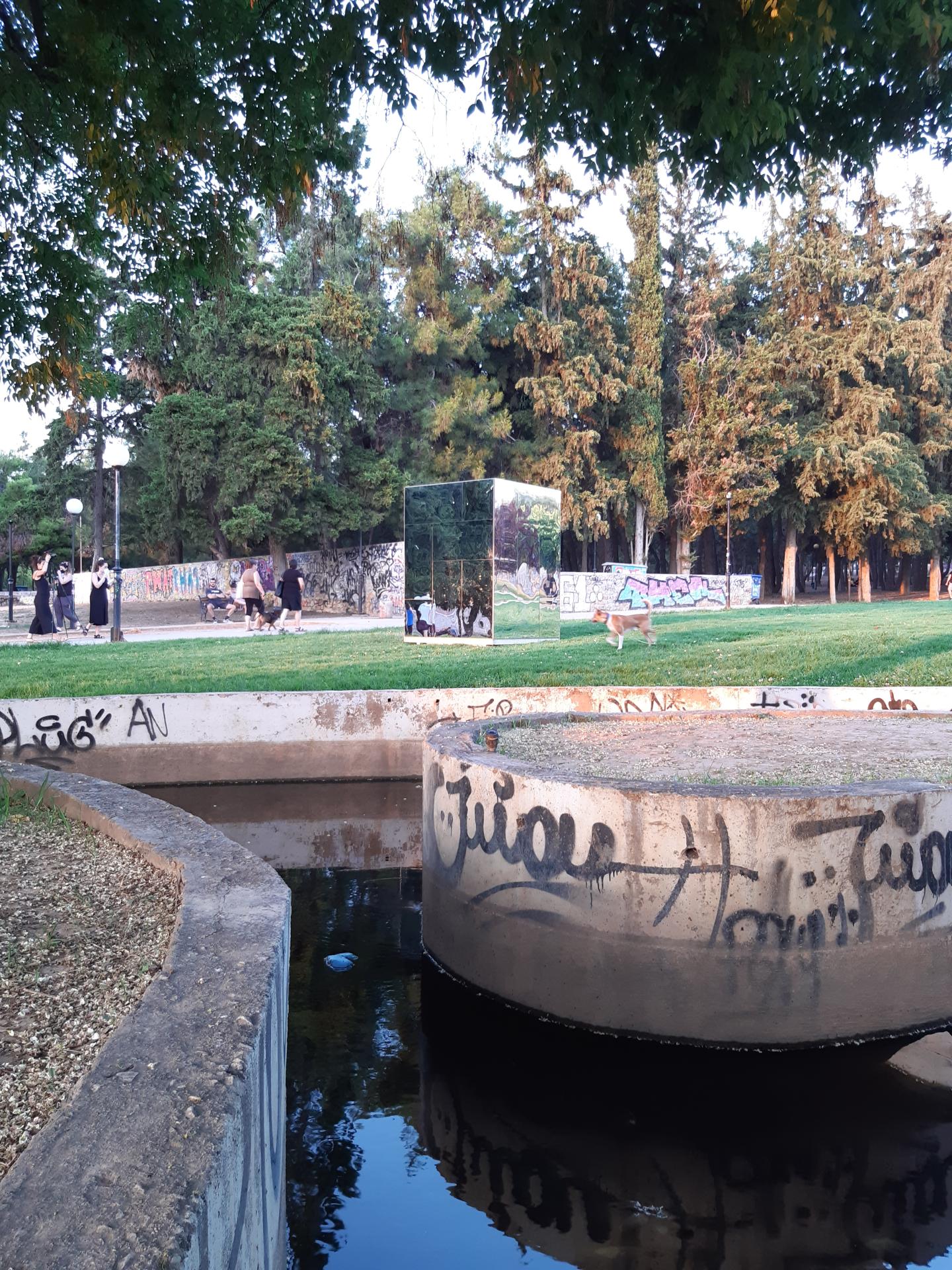 The BfE, as a small scale project, has as its initial objective to investigate in efficient ways how an experience of an “eterotopia” could emerge in the public space in order to trigger citizens’ participation and/or expression. Building upon this crucial point, the aesthetic of the installation had a minimal approach in terms of design, having as core element the simple form of a wooden box which has walls on two sides and creates a sense of privacy to the user by adjusting the spinning door which is located in the corner of two other uncovered sides. The wooden walls consist of two types of assembling modules which are combined and create a grid-pattern, while at the same time they are externally covered by mirrors in order to be aesthetically aligned with the basic concept of the installation. In that way, the box becomes one with the surrounding environment because of the reflecting cityscape and the user as she/he approaches the infrastructure - creating to her/him the illusion of becoming invisible, giving in parallel the opportunity to share feelings or experiences in a “safe space”. In addition to that, a printed guide with artwork related to the period of confinement and a small artifact of a toilet-mirror were designed to support the implementation of PToT (first use case of BfE). In these two additional objects, aesthetic elements of collage and ready-mades of dadaism tradition, were integrated in order to create a fully-featured atmosphere of a “toilet of thoughts” ready-to-use.