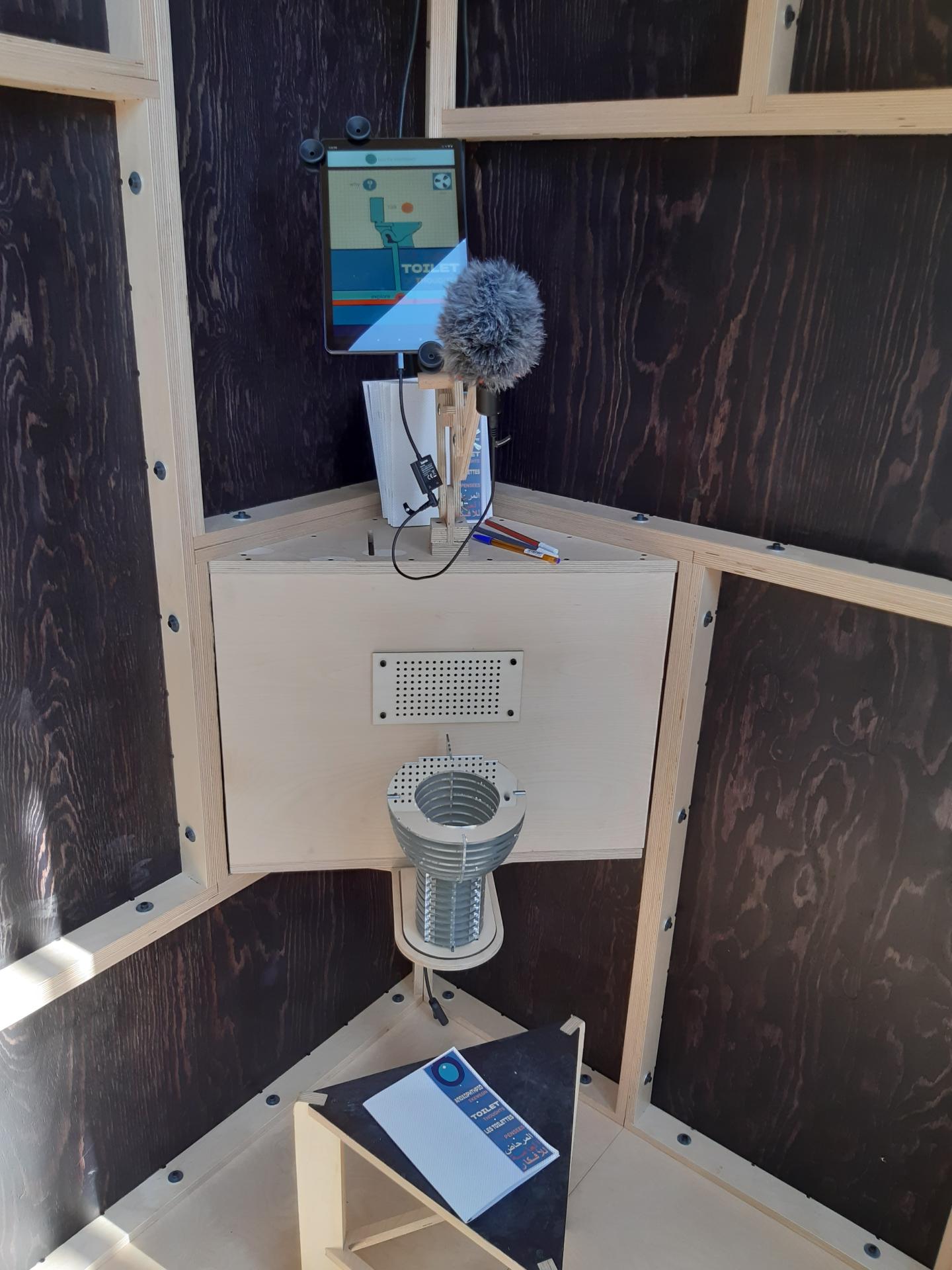 The “Box for Expression” (BfE) project is an installation that supports storytelling and sharing experiences in the urban public space. It is a small scale modular/mobile infrastructure that can be installed in different parts of a city depending on the needs of each action. It is available to creative groups and organizations that are active in the field of oral history, arts or any kind of research in the public space. The “Public Toilet of Thoughts” (PToT) was the first use case scenario which settled in and appropriated the BfE during the summer of 2021 in Athens. The idea was created as an experimentation in-between research and art in order to explore how people could respond to the challenge of expressing and sharing feelings and experiences about the pandemic. Social distancing as a consequence of Covid-19 pandemic has escalated social isolation of contemporary metropolises. We wanted to create a symbolic space of reconnection between the passerby and the neighborhood, and also with the community that inhabits it. It challenged us to participate in a collective ritual, by confessing small fragments from our internal worlds. The installation was used in pop-up events (duration: 4-6 hours) in public spaces (parks and squares) of 4 different neighborhoods of Athens (Kypseli, Chalandri, Kesariani and Kolonos - as part of an advocacy event) and collected around 250 oral narratives. During the events, the users of the installation had the opportunity to listen to previous responses and to record or write their thoughts. This material gradually formed a collective audio archive of people’s feelings and experiences during the pandemic and right after the imposed lockdowns which is also presented in the website of the project along with a short documentary (https://boxforexpression.gr/case/use-case_01/). The experience of using PToT was accompanied by an artifact of a mirror-toilet and a small printed guide in the format of a fanzine in 4 different languages.
