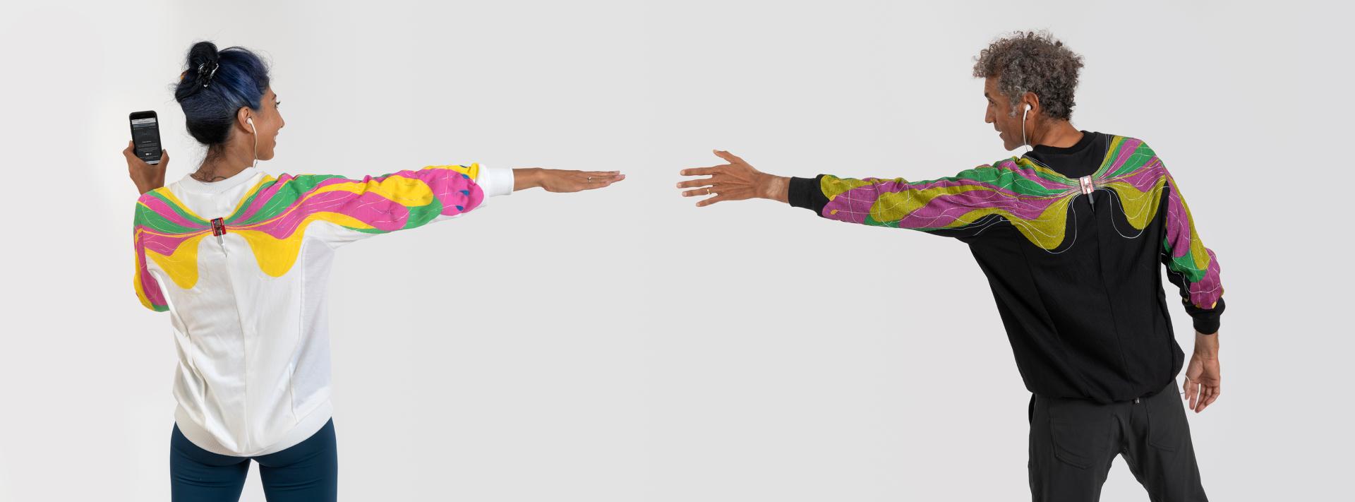 When we speak of wearable technology or sensory textiles, the focus tends to be on functionality that prioritizes the monitoring and reporting of various bodily functions, such as providing temperature control (warmth, cooling). Technology is also often perceived as cold and impersonal because it seldom addresses emotional issues connected to isolation, as well as interpersonal relationships and the environments in which we live. Embroidered Touch | Life Space is a collaborative project, that goes beyond those modalities, to explore wearable technology’s potential to contribute to emotional wellbeing as well as foster meaningful connections. It does this by facilitating and encouraging the act of play, curiosity, and creativity within users, as well as encouraging moments of joy while connecting with others through the experience.