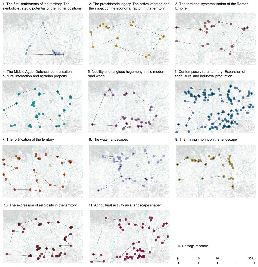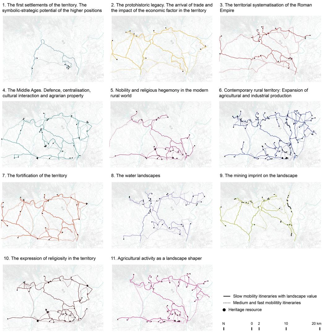 The extensive mesh of identity manifestations that define, in each place, its characteristic landscape is made up of singular heritage pieces of special historical and artistic value, but also by an extensive set of historical permanences scattered throughout the territory that, although they do not have the singularity of the most outstanding pieces, express in an integrated way the particularity of a territory and its history. All these local heritage traces cannot be covered by the heritage protection scheme because they would collapse a system that is focused on safeguarding the singular, but they could be addressed within a landscape-based strategy. Promoting strategies for recognizing and valuing the heritage structure that underlies any landscape, beyond its most singular components, is vital because it ensures the permanence of the differentiating features of the landscapes and thus contributes to maintaining diversity, identity, uniqueness, cultural richness, sense of place and sense of belonging. Under this premise, an app design is proposed. It aims is to offer an enjoyable experience that allows communities to discover their local heritage and the stories associated with it. The app has mainly three functions: to recognize and locate the complex mesh of local heritage pieces of a landscape (1); to organize the local heritage pieces on the basis of thematic landscape networks. Each network tells a particular story about the landscape that can be read or listened directly in the app (2); to ‘spatialize’ the stories: the app will connect the heritage pieces of each network-story through the existing slow mobility structure (3). In this way, different thematic cultural routes are created so that the local population can access on foot or by bicycle the heritage. It also offers local administrations a resource to promote their heritage and landscape through experiences that combine an open-air recreational activity with cultural leisure.